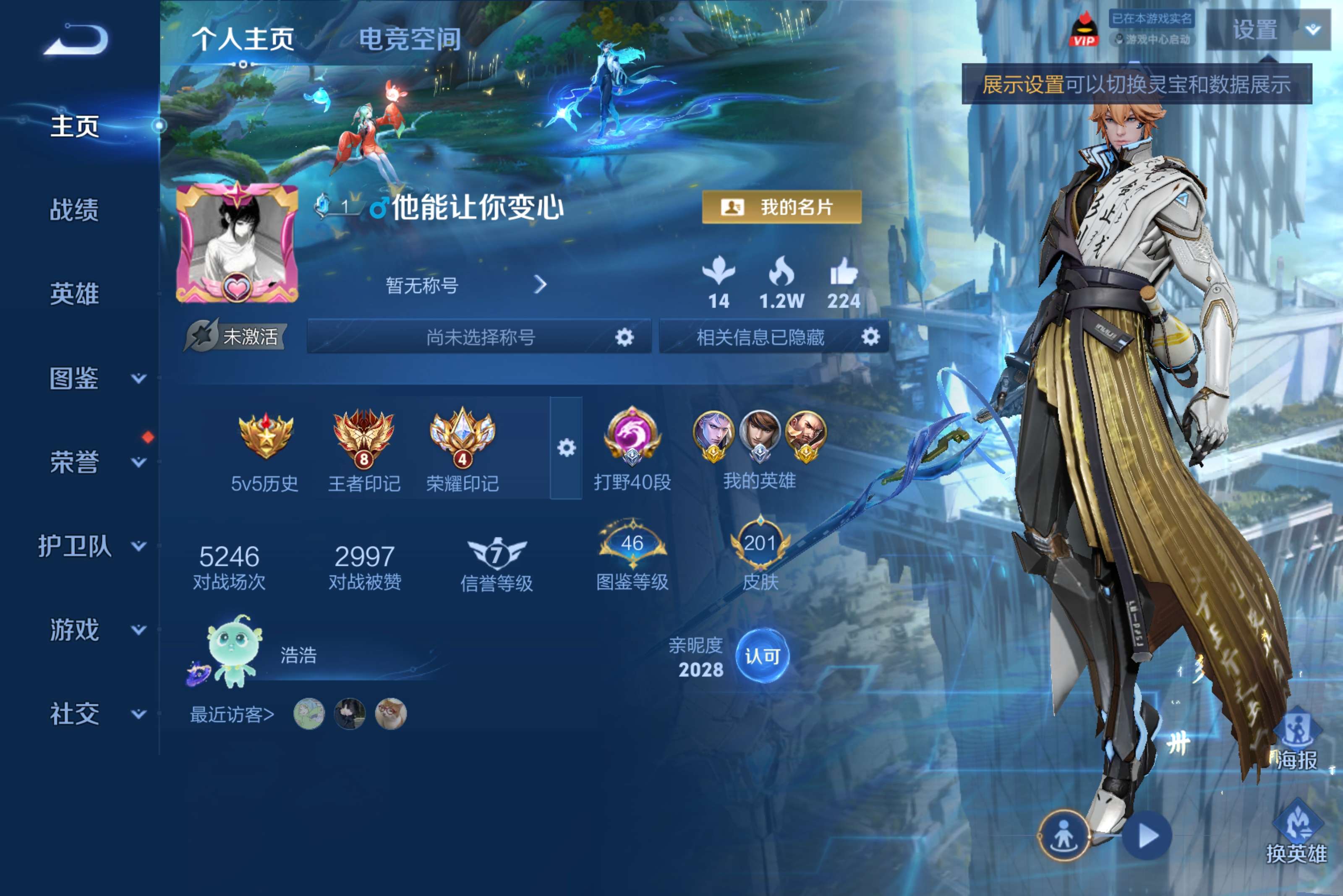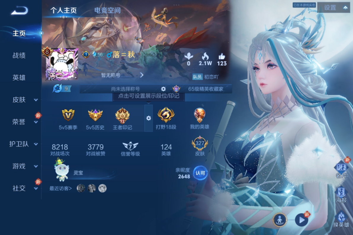 贵族等级:v8皮肤数:232情人节限定3 传说品质21 生肖限定9 荣耀典藏1 无双1 英雄数:121