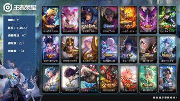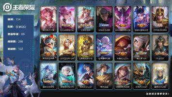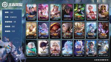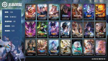 贵族等级:v8皮肤数:201传说品质20 生肖限定6 情人节限定1 荣耀典藏1 珍品传说1 无双1 英雄数:120
