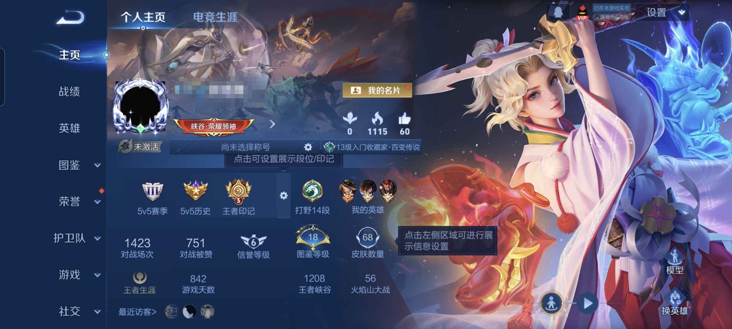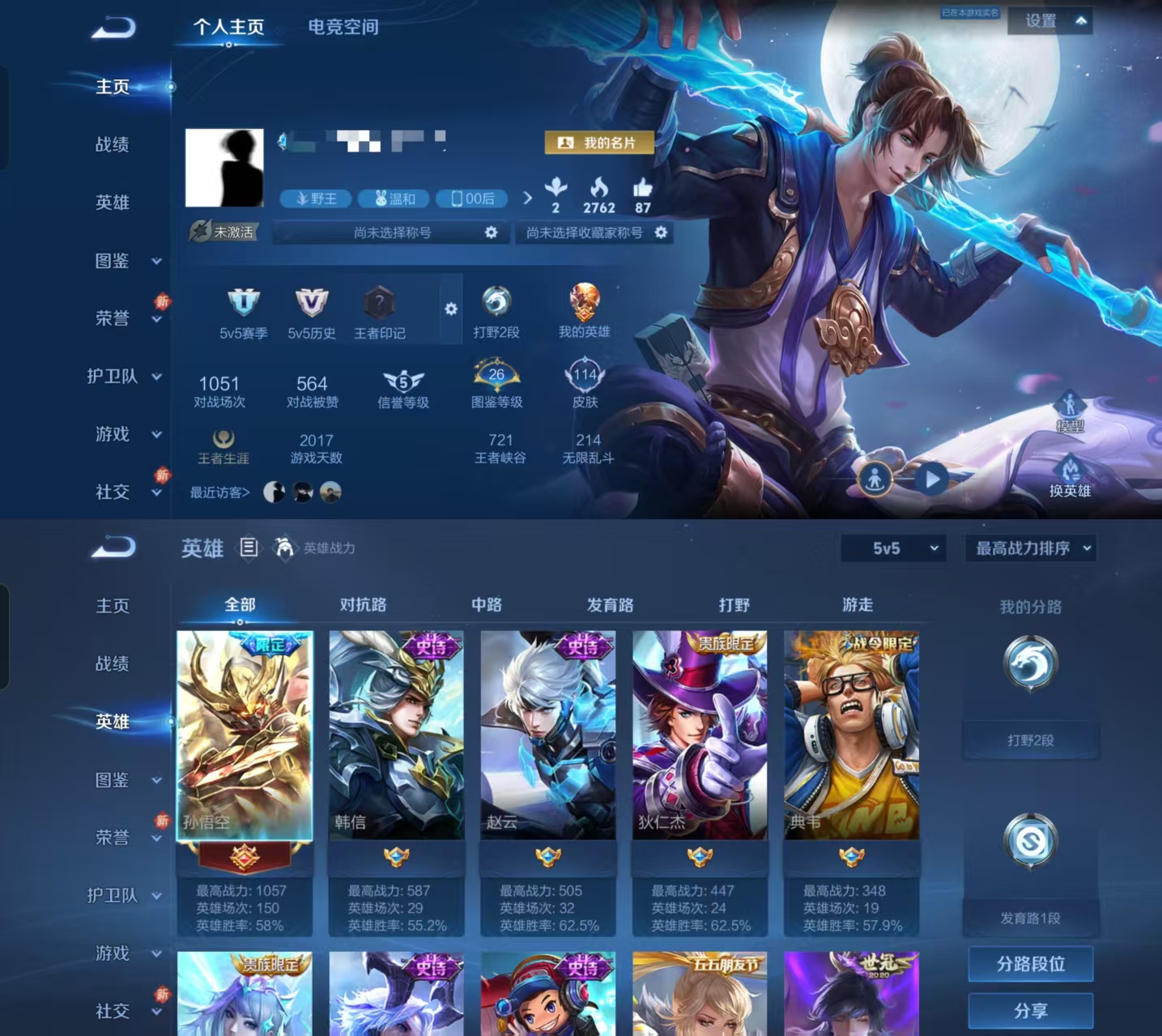 贵族等级:v8皮肤数:114传说品质12 情人节限定1 荣耀典藏1 英雄数:92