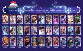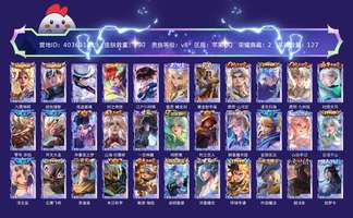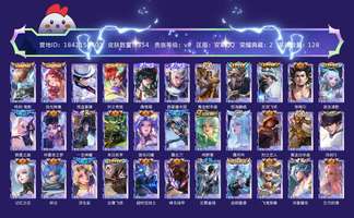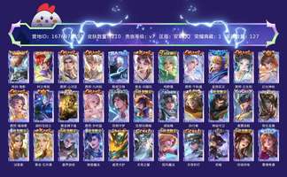 贵族等级:v8皮肤数:292生肖限定6 情人节限定2 荣耀典藏2 传说品质17 英雄数:127