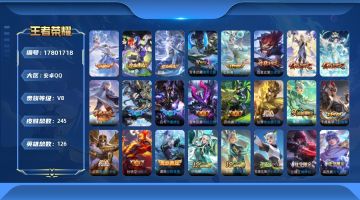 贵族等级:v8皮肤数:245生肖限定7 传说品质15 情人节限定1 珍品传说2 荣耀典藏1 英雄数:126