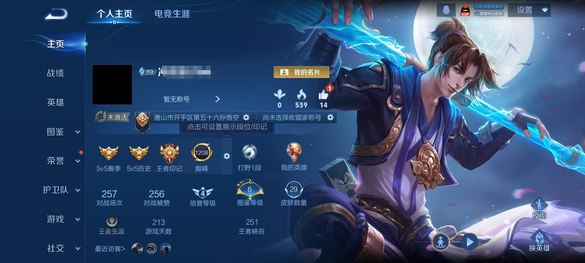 贵族等级:v7皮肤数:218传说品质11 生肖限定6 情人节限定1 荣耀典藏1 英雄数:126