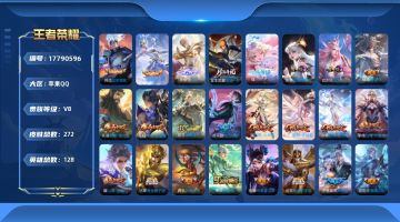贵族等级:v8皮肤数:273传说品质20 生肖限定10 无双1 珍品传说2 荣耀典藏2 英雄数:128