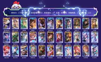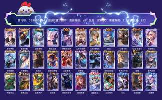 贵族等级:v8皮肤数:199荣耀典藏2 情人节限定5 传说品质11 生肖限定6 英雄数:122