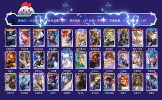 贵族等级:v8皮肤数:342生肖限定9 传说品质19 情人节限定3 荣耀典藏1 英雄数:127