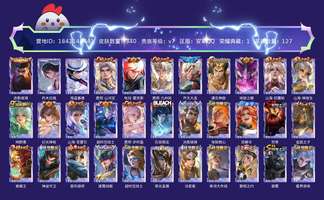 贵族等级:v7皮肤数:340荣耀典藏1 传说品质13 生肖限定10 珍品传说2 英雄数:127