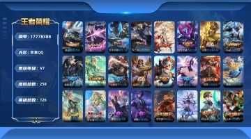 贵族等级:v7皮肤数:258传说品质10 生肖限定2 珍品传说1 荣耀典藏1 英雄数:126