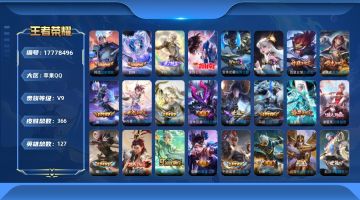 贵族等级:v9皮肤数:366传说品质22 情人节限定4 生肖限定7 荣耀典藏2 无双1 珍品传说1 英雄数:127