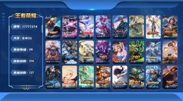 贵族等级:v8皮肤数:370传说品质24 生肖限定4 情人节限定3 荣耀典藏1 珍品传说2 英雄数:127