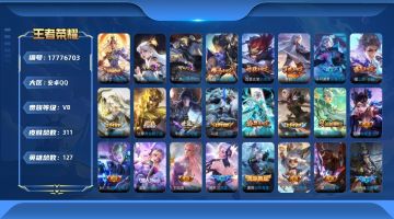贵族等级:v8皮肤数:311生肖限定11 情人节限定4 传说品质20 荣耀典藏1 英雄数:127