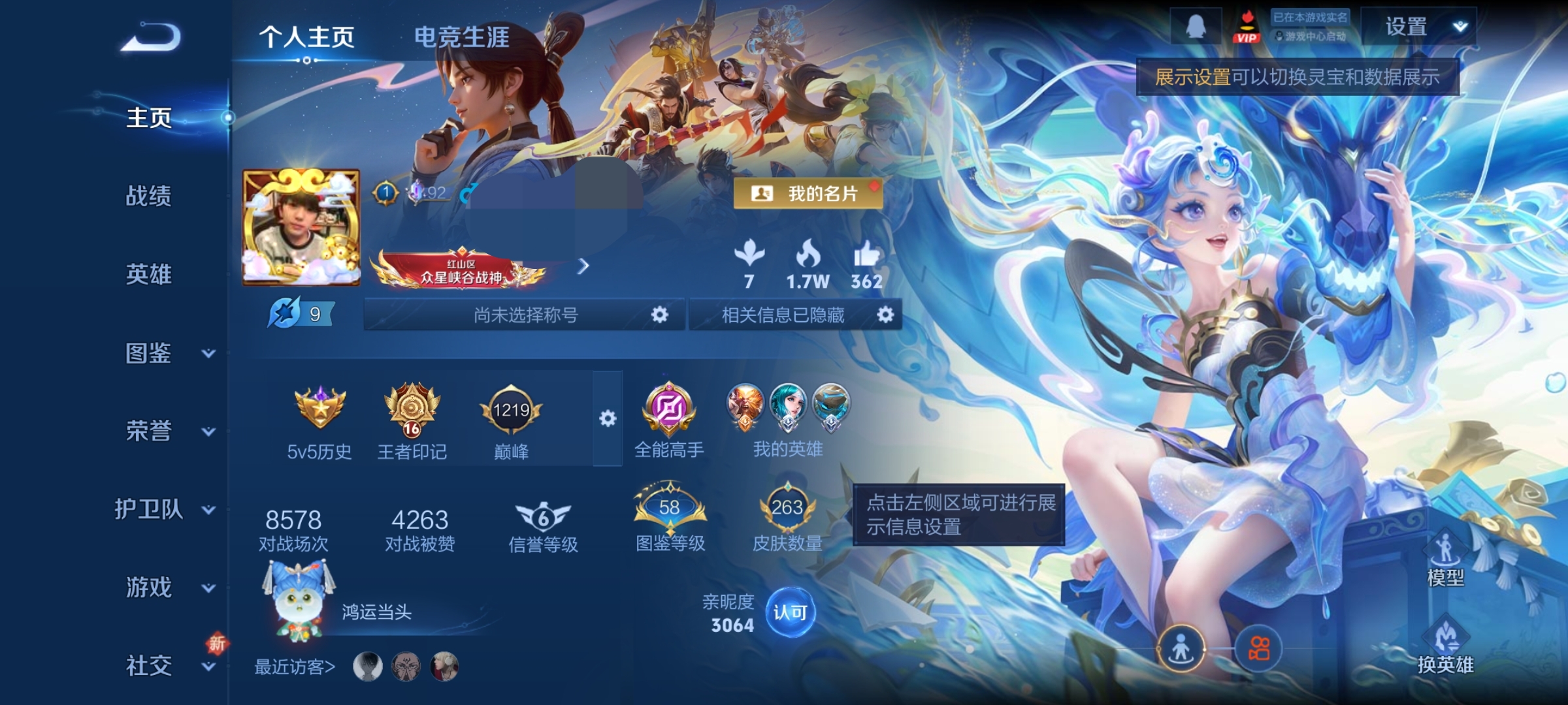 贵族等级:v7皮肤数:263传说品质6 生肖限定4 荣耀典藏1 英雄数:126