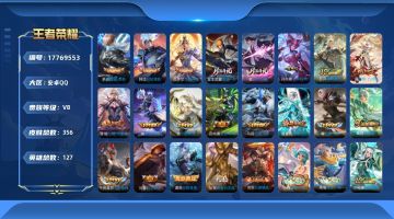 贵族等级:v8皮肤数:356情人节限定2 传说品质14 生肖限定5 珍品传说2 荣耀典藏3 英雄数:127