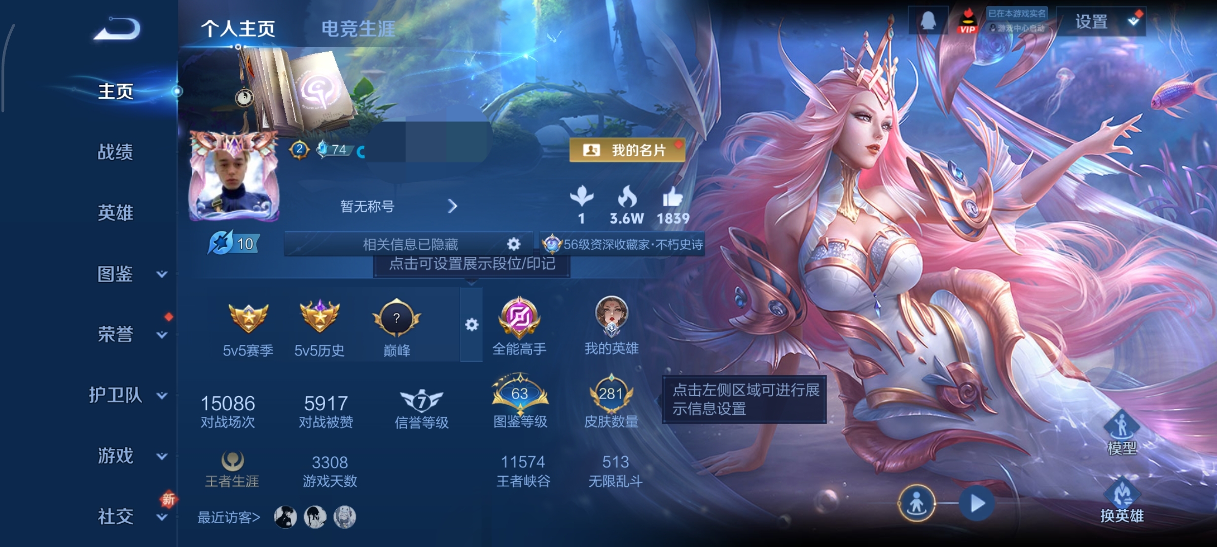 贵族等级:v7皮肤数:281传说品质7 情人节限定1 生肖限定2 荣耀典藏1 英雄数:127