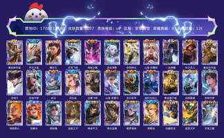 贵族等级:v7皮肤数:329传说品质19 生肖限定4 珍品传说1 荣耀典藏1 英雄数:126