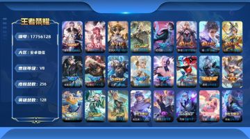 贵族等级:v8皮肤数:256生肖限定11 传说品质13 荣耀典藏1 情人节限定1 无双2 英雄数:128