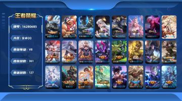 贵族等级:v8皮肤数:361传说品质20 生肖限定7 情人节限定1 荣耀典藏2 英雄数:127