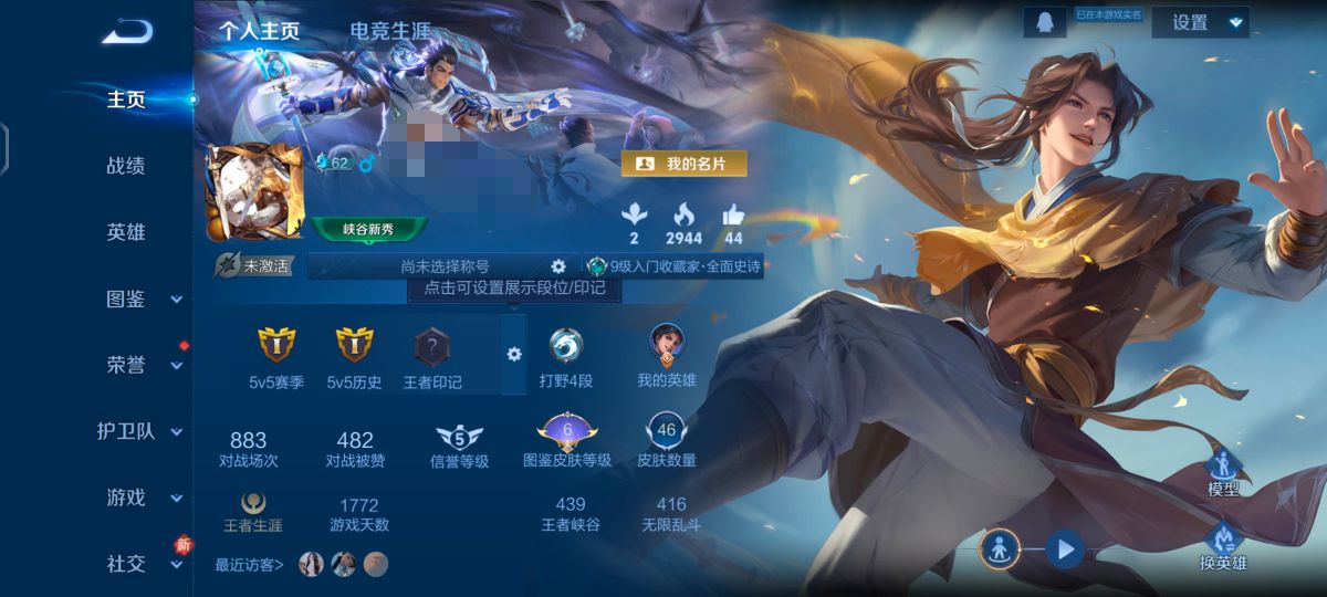 贵族等级:v6皮肤数:46传说品质5 英雄数:75