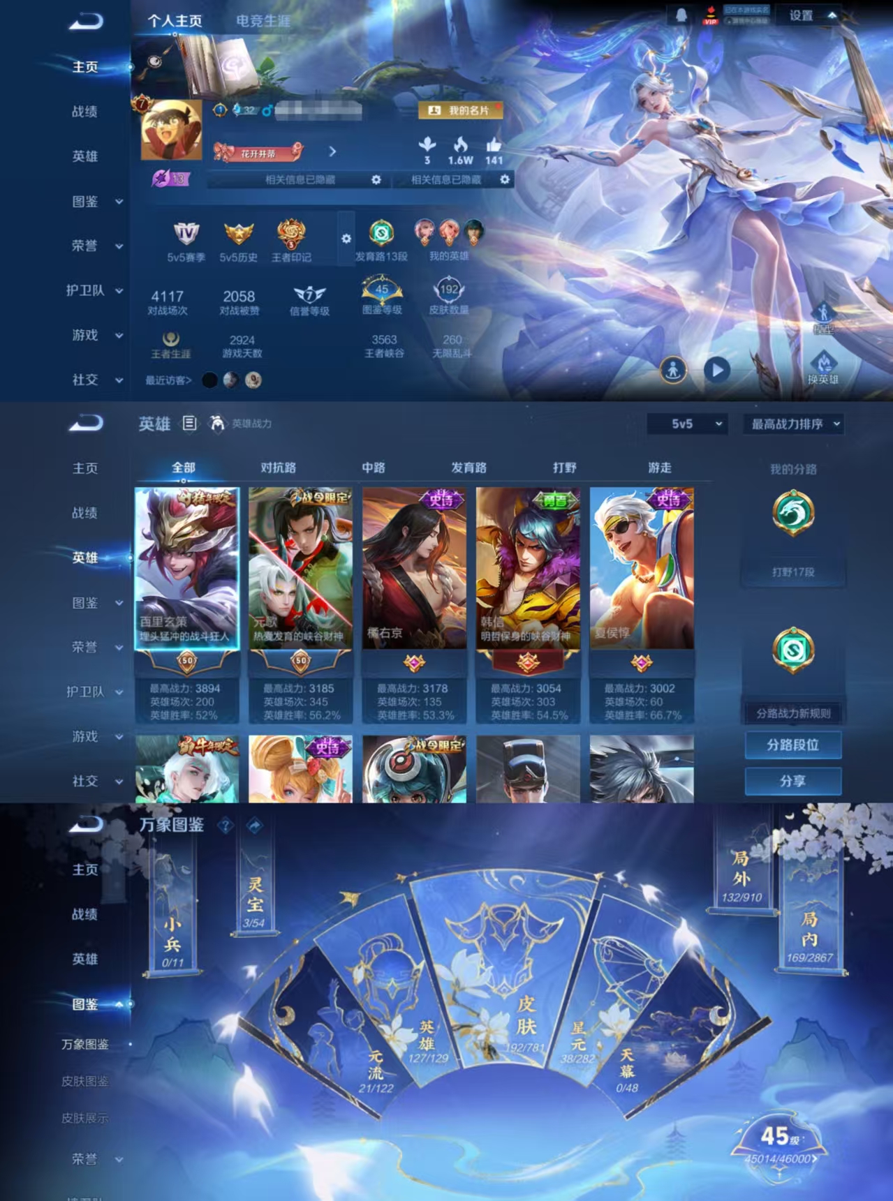 贵族等级:v6皮肤数:169传说品质10 生肖限定2 英雄数:126