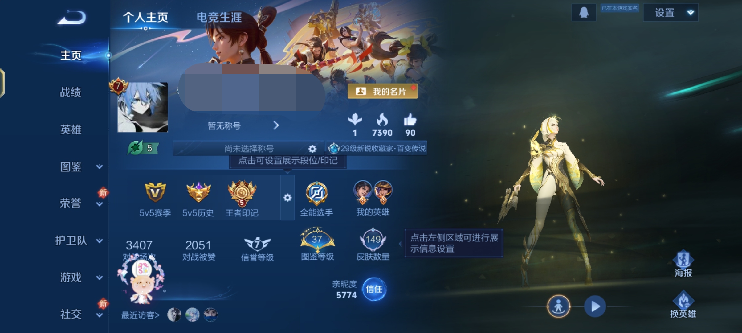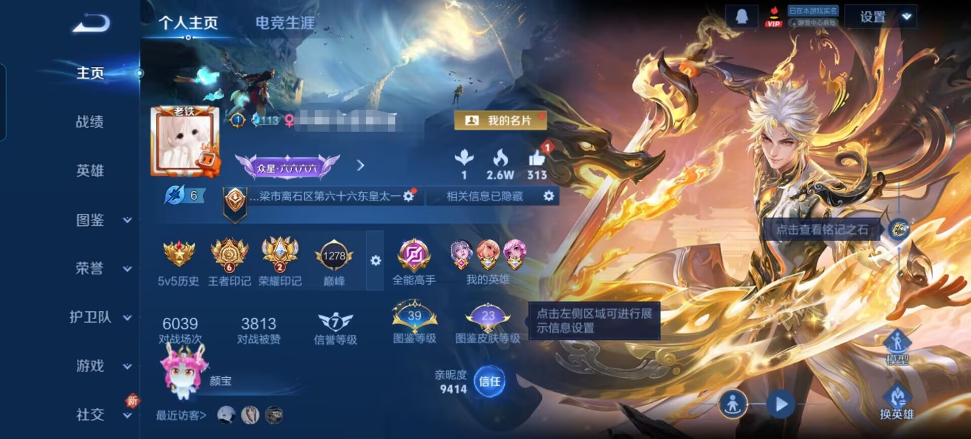 贵族等级:v7皮肤数:149传说品质19 生肖限定2 英雄数:125
