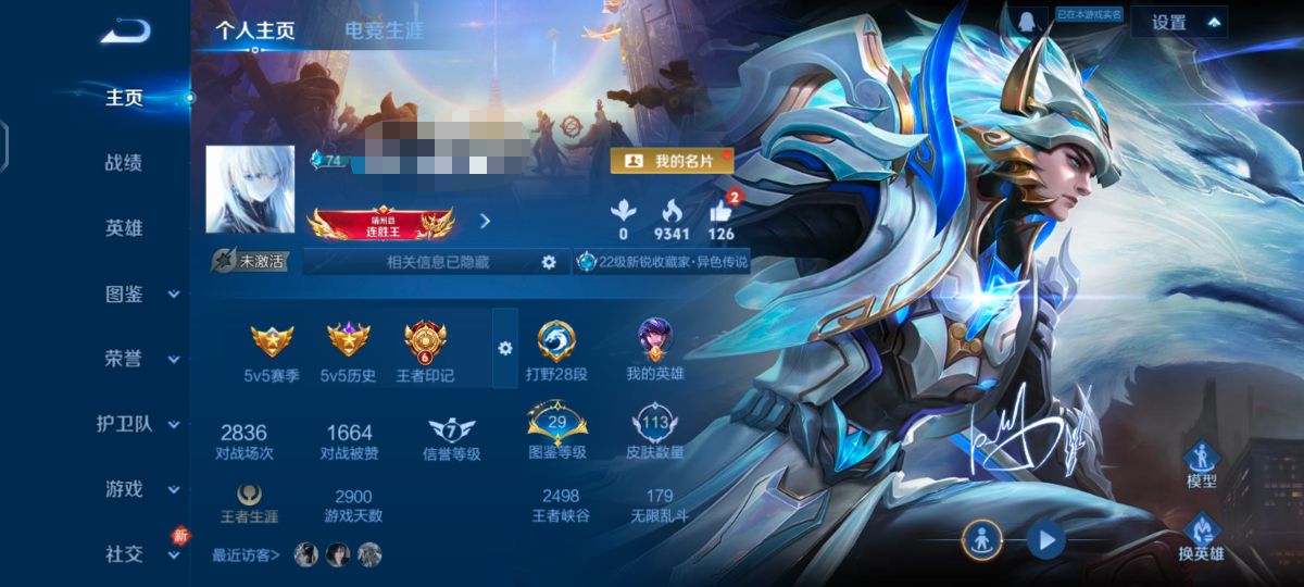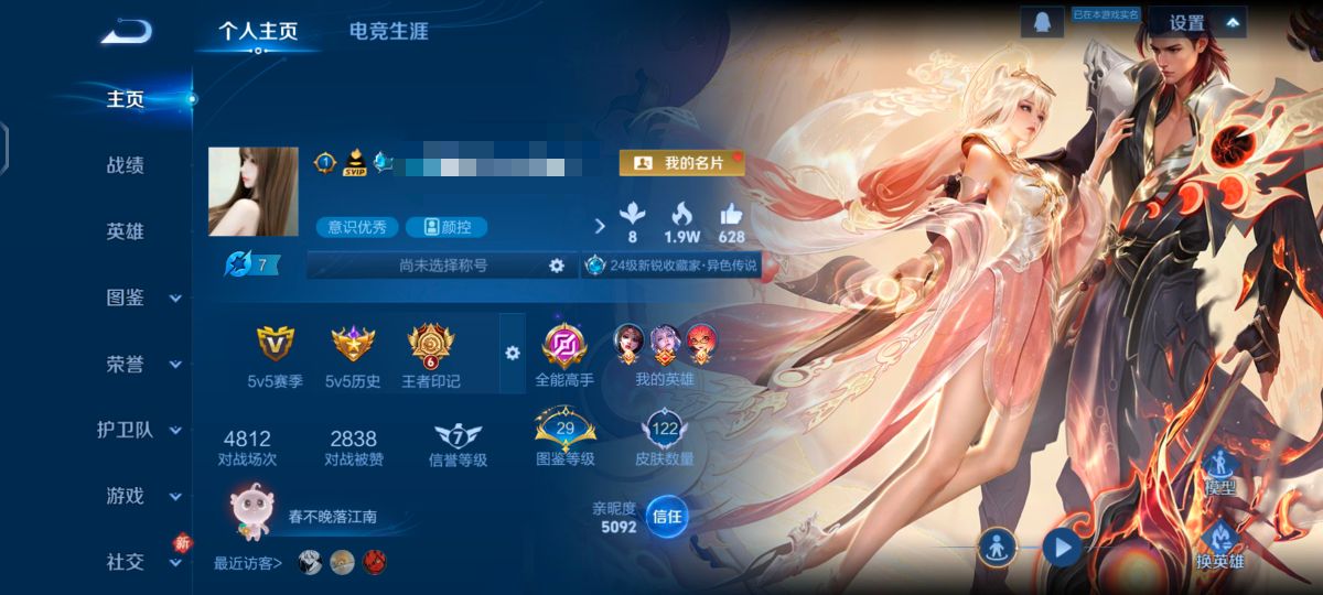 贵族等级:v9皮肤数:312情人节限定5 传说品质25 生肖限定11 荣耀典藏2 英雄数:124