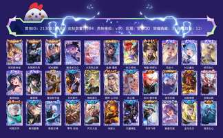 贵族等级:v8皮肤数:306传说品质23 生肖限定10 情人节限定2 荣耀典藏1 英雄数:127