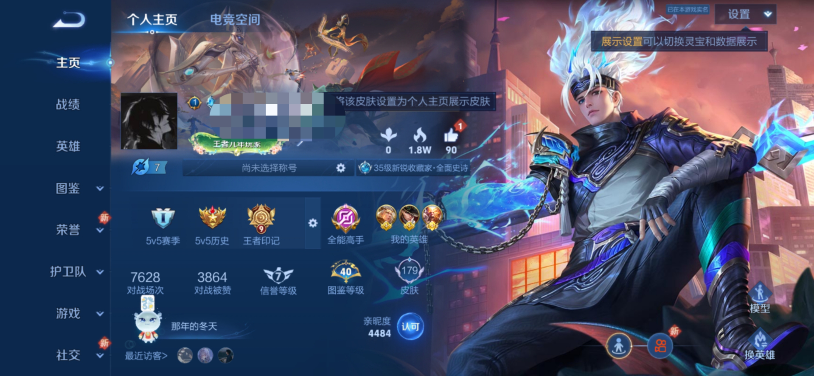 贵族等级:v8皮肤数:266传说品质12 生肖限定4 情人节限定2 荣耀典藏1 英雄数:121