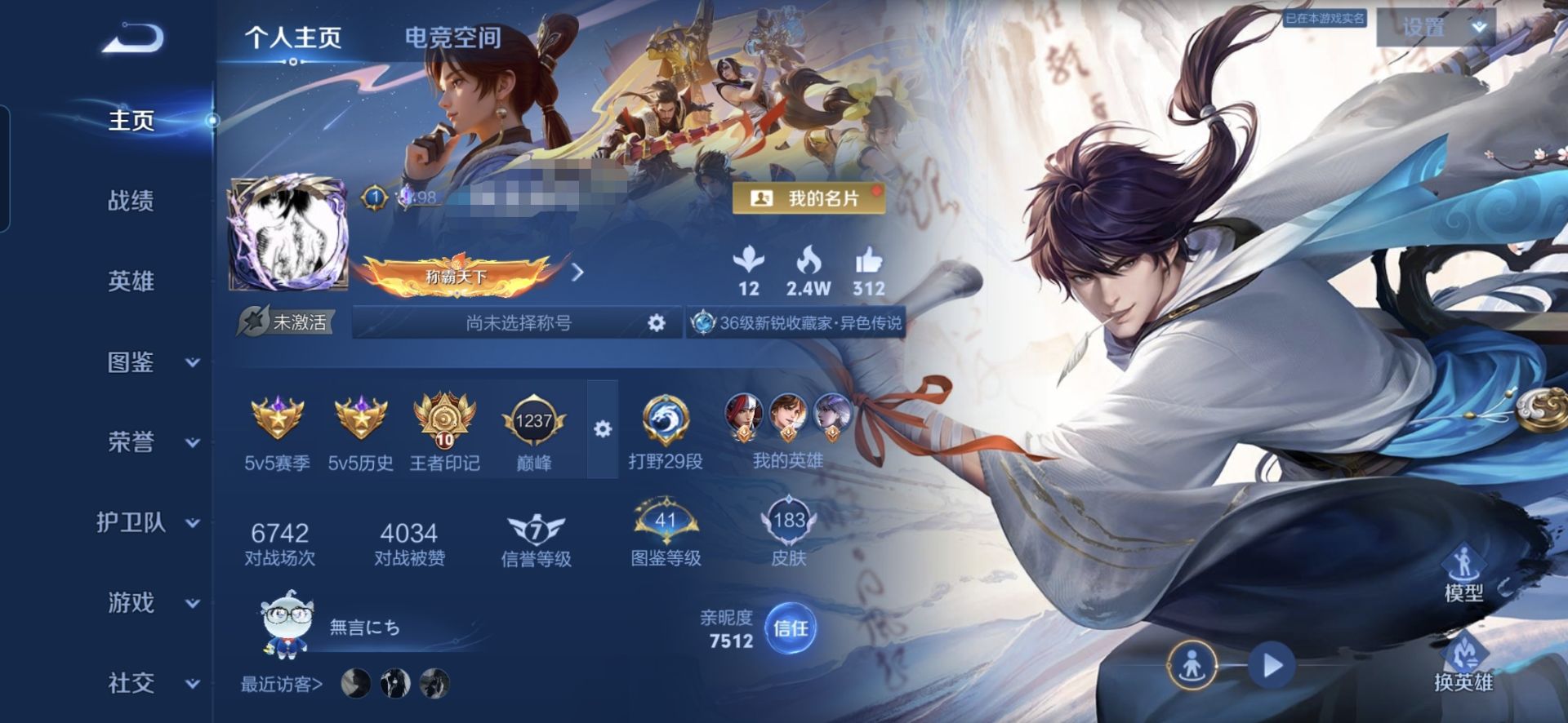 贵族等级:v6皮肤数:183生肖限定2 传说品质5 英雄数:125