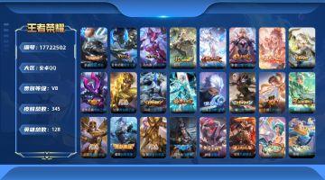 贵族等级:v8皮肤数:345传说品质16 生肖限定5 情人节限定4 荣耀典藏1 英雄数:128