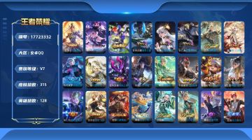 贵族等级:v7皮肤数:364传说品质6 生肖限定1 荣耀典藏3 英雄数:126