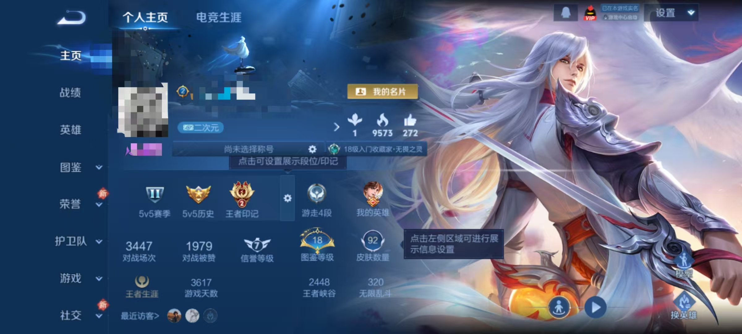 贵族等级:v8皮肤数:355传说品质23 生肖限定3 珍品传说3 荣耀典藏2 情人节限定1 英雄数:127