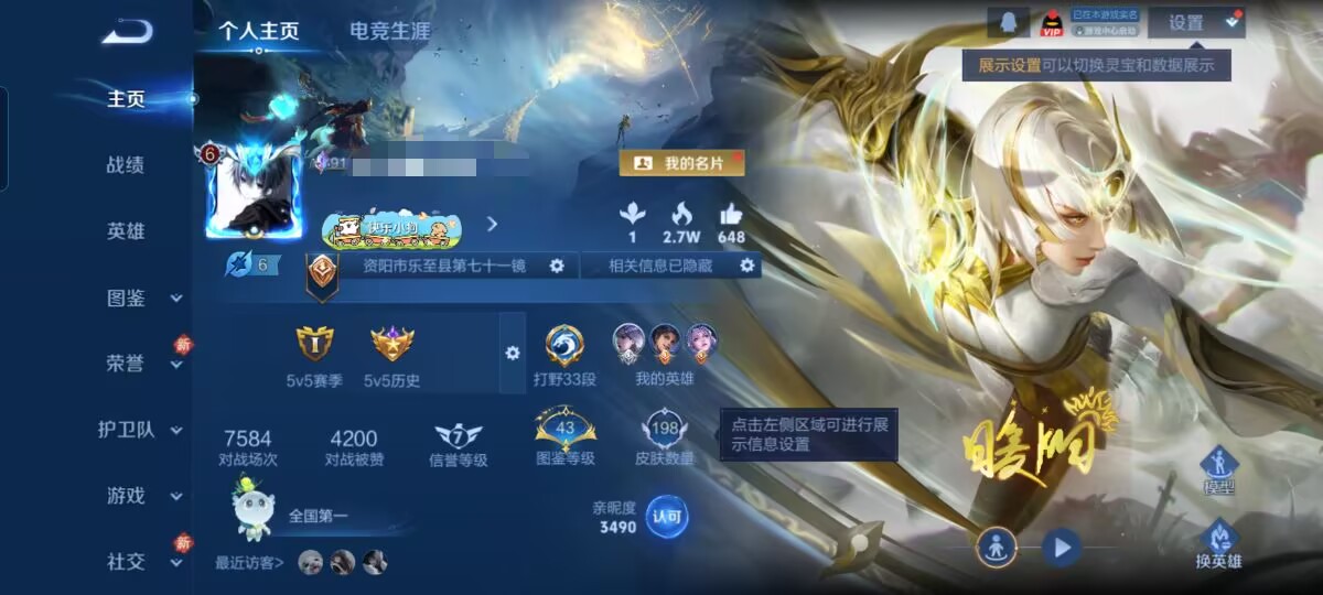 贵族等级:v7皮肤数:186传说品质15 生肖限定3 英雄数:127