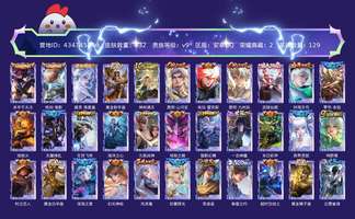 贵族等级:v9皮肤数:432传说品质34 情人节限定4 生肖限定13 荣耀典藏2 珍品传说1 英雄数:129