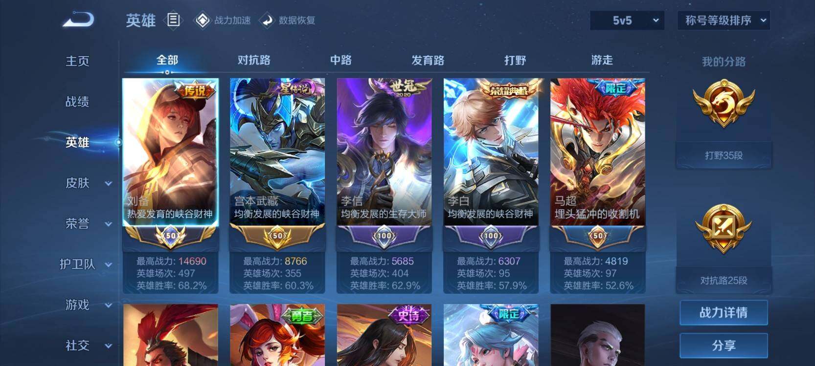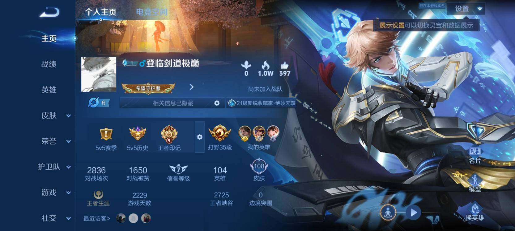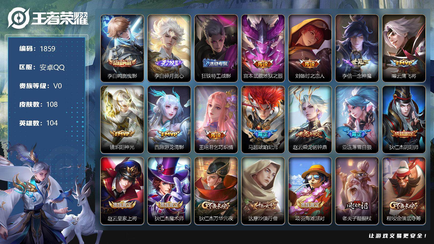 贵族等级:v6皮肤数:196传说品质2 荣耀典藏1 英雄数:121