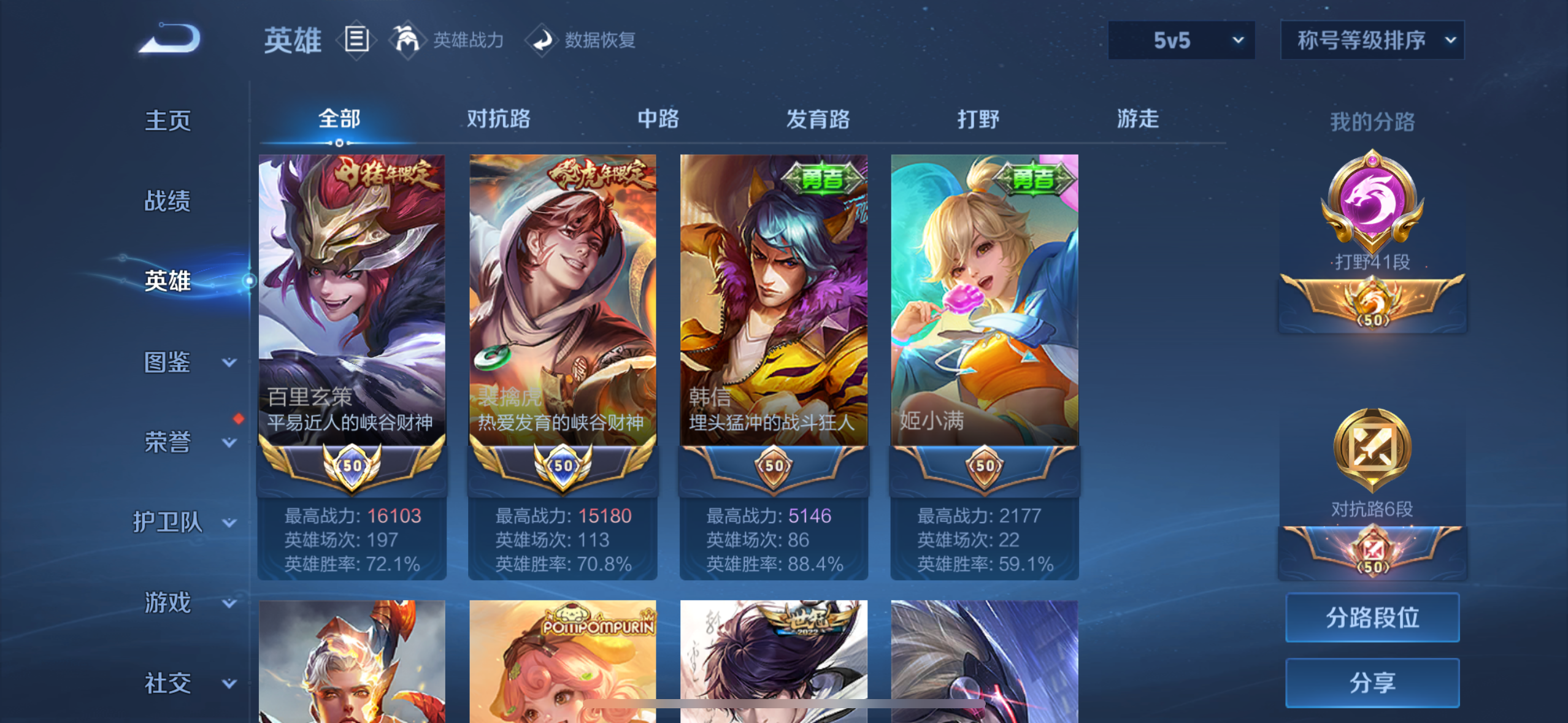 贵族等级:v6皮肤数:90传说品质6 生肖限定1 英雄数:105