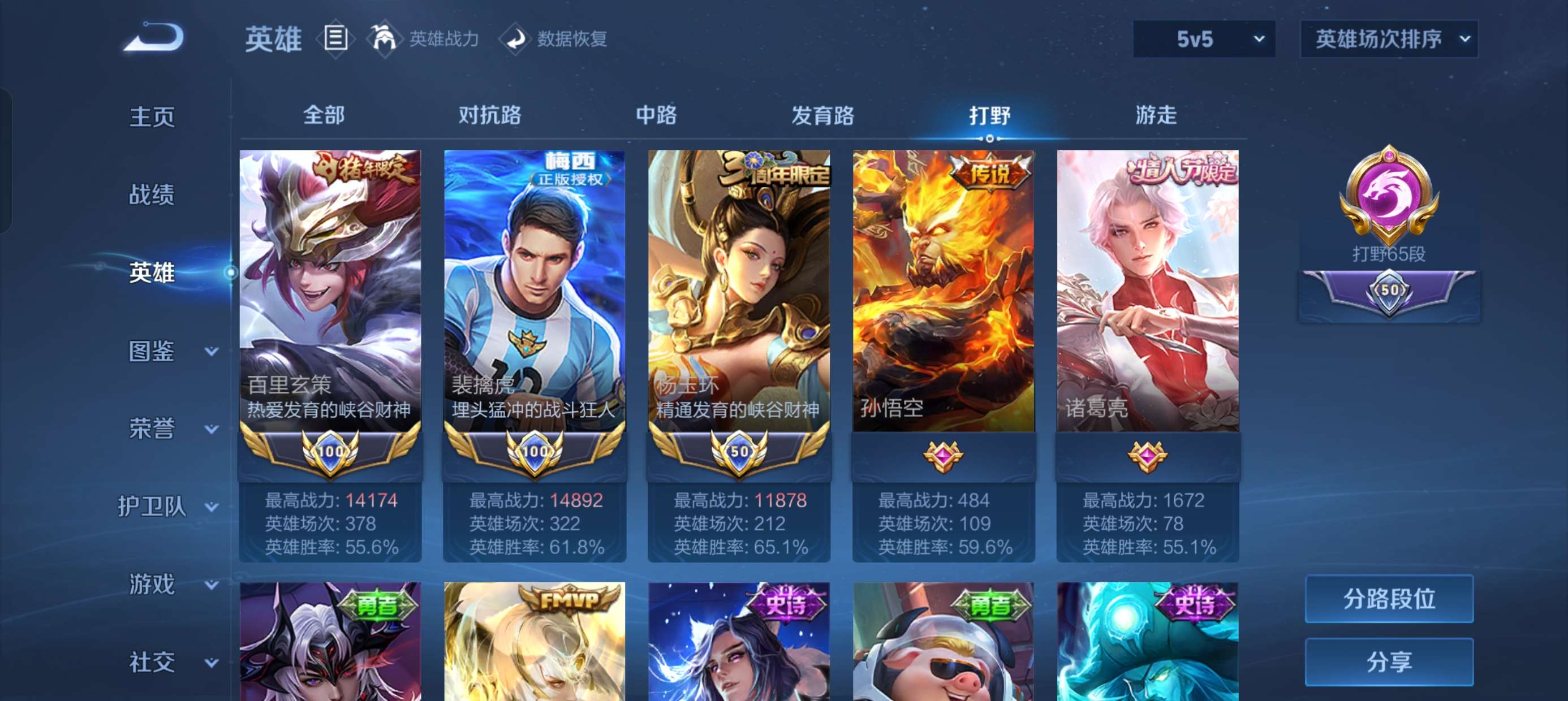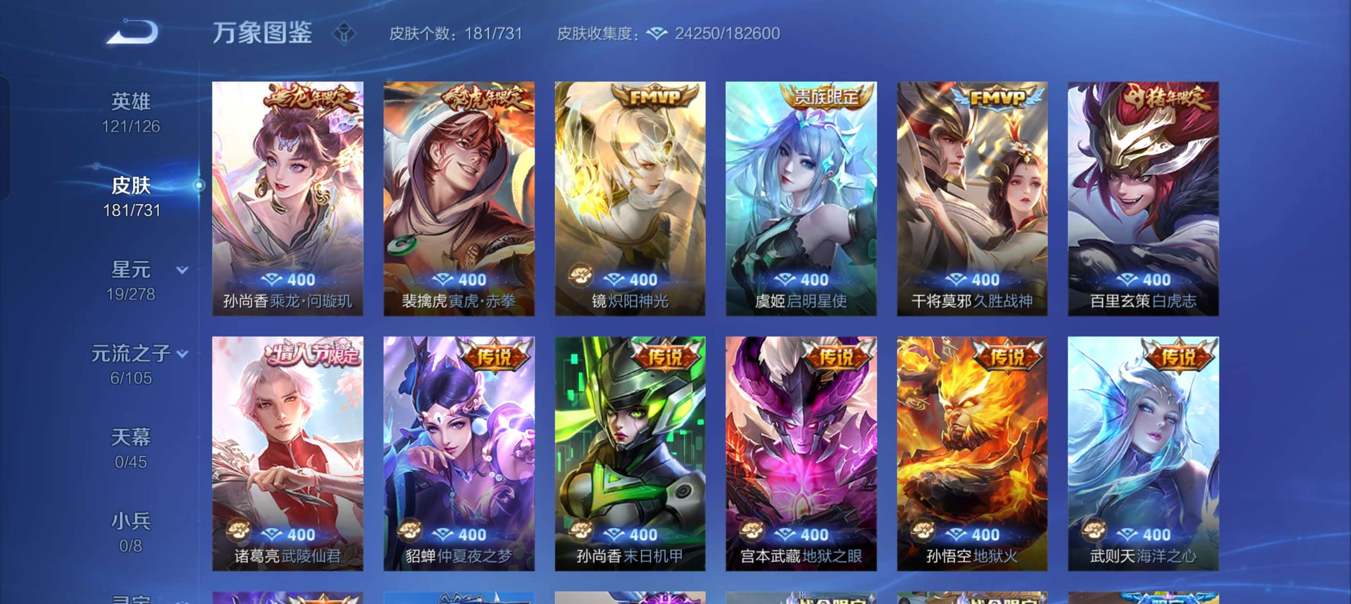 贵族等级:v7皮肤数:93生肖限定4 传说品质7 英雄数:92