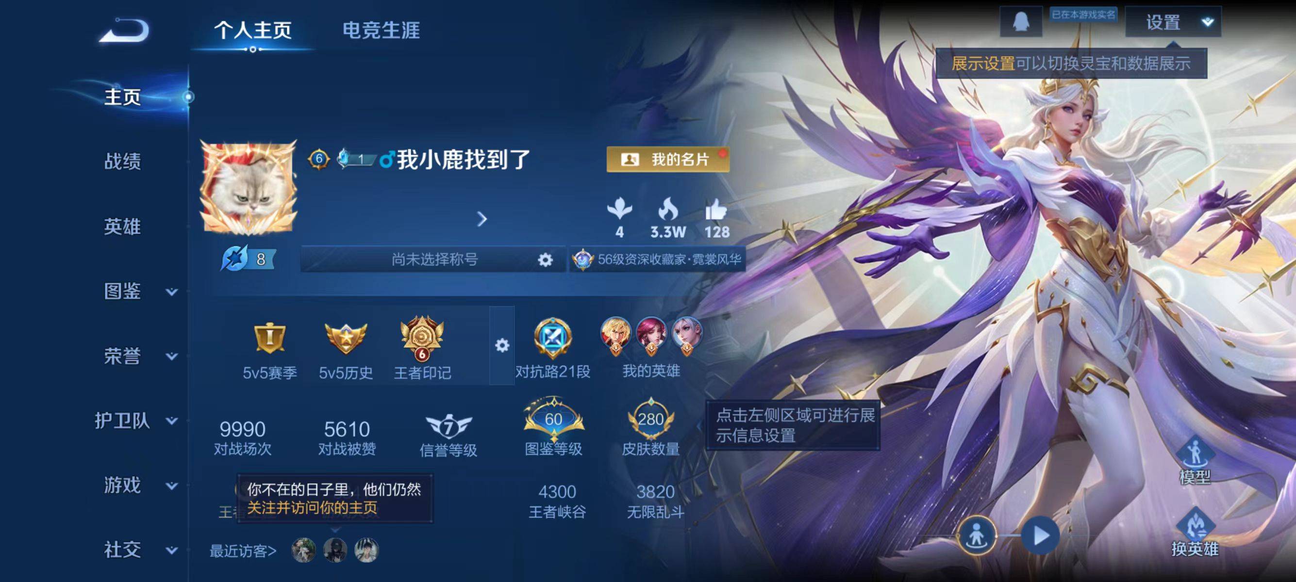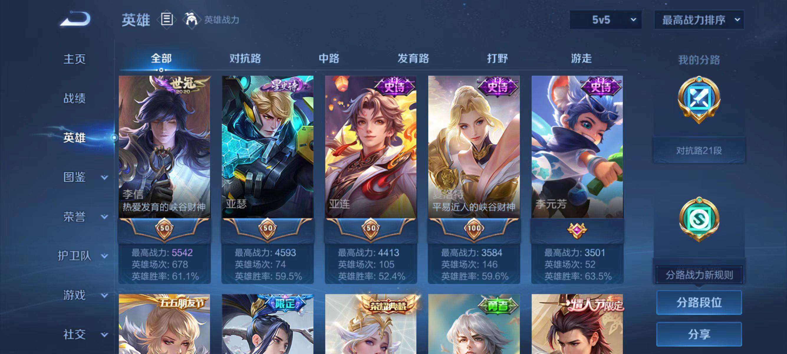 贵族等级:v7皮肤数:120生肖限定3 传说品质6 情人节限定1 英雄数:96