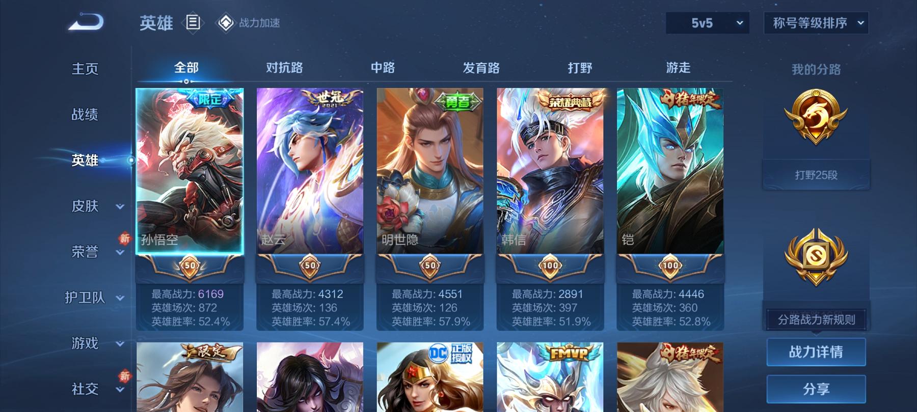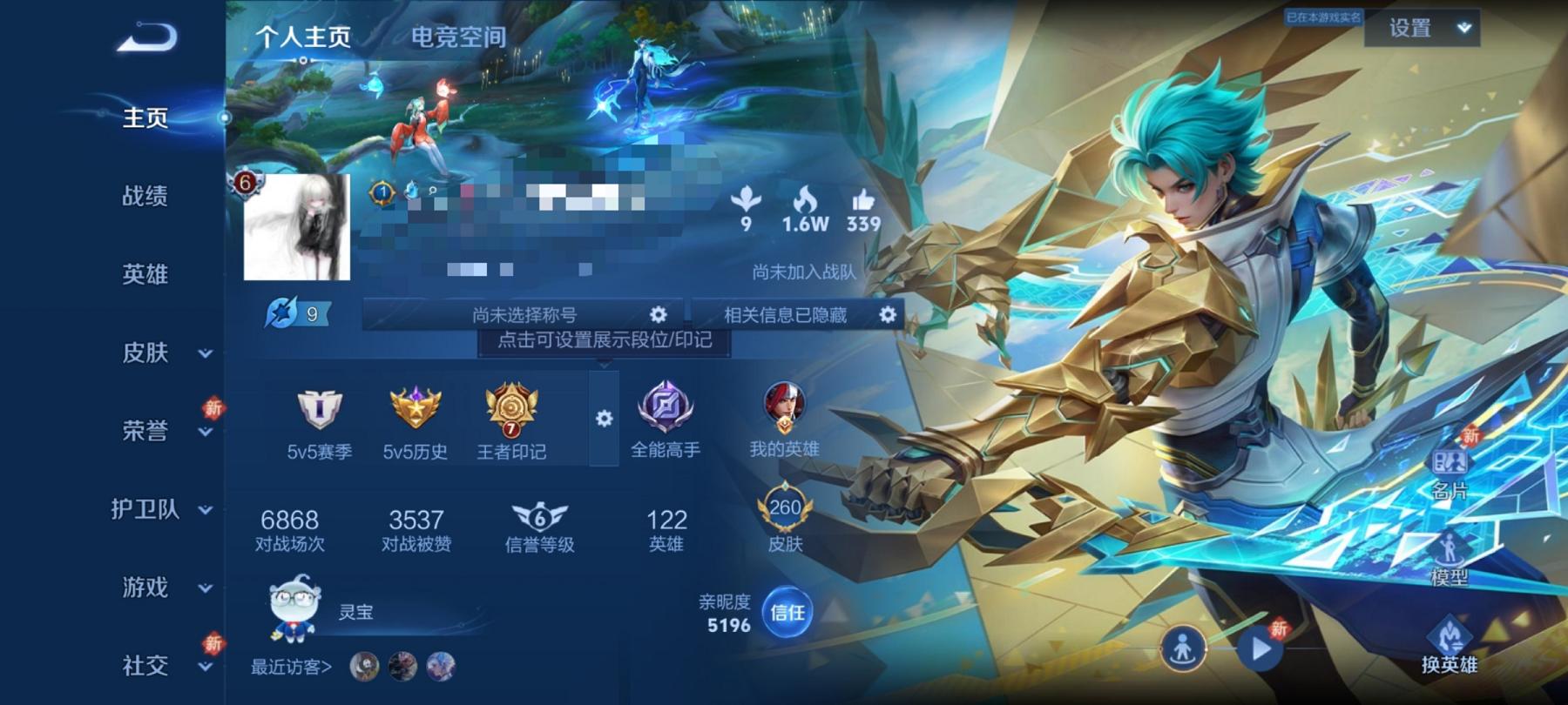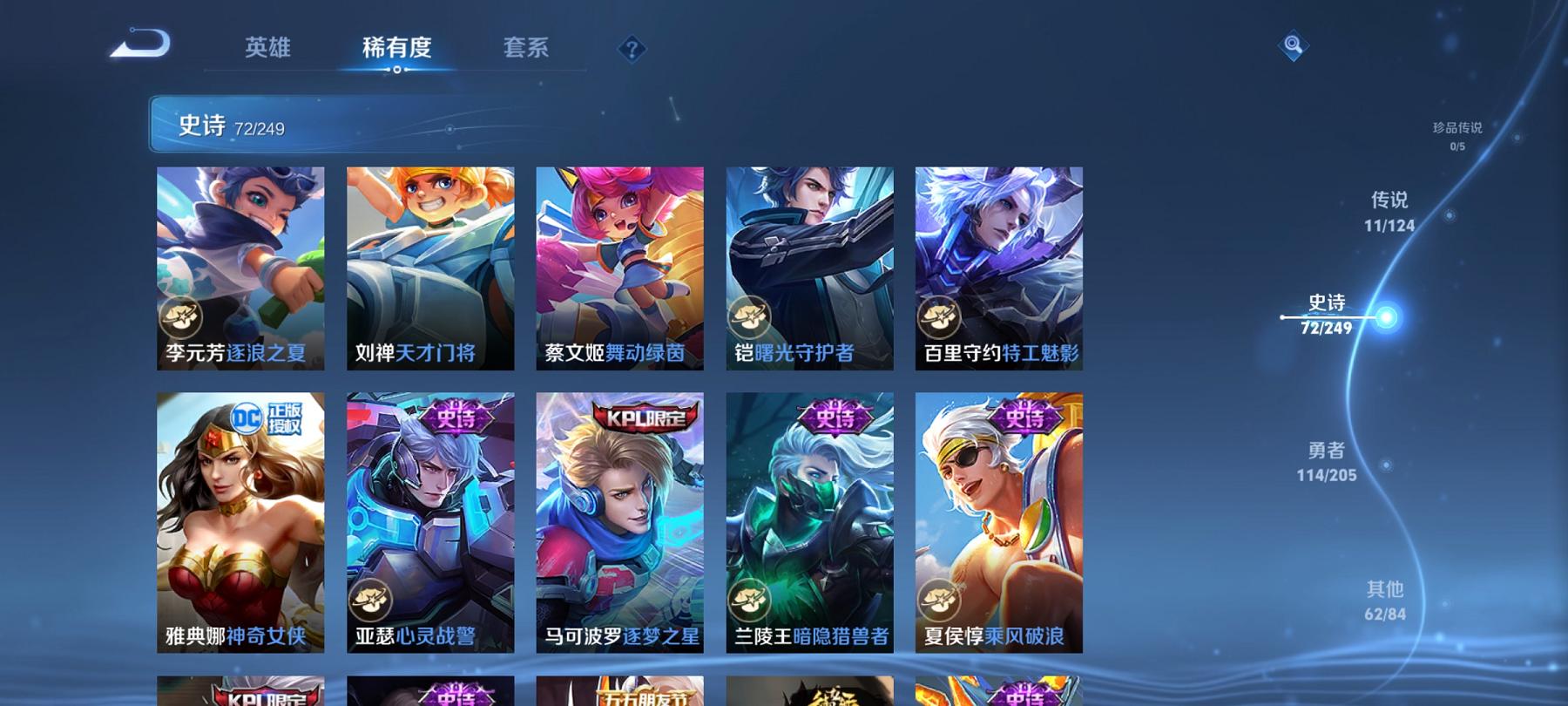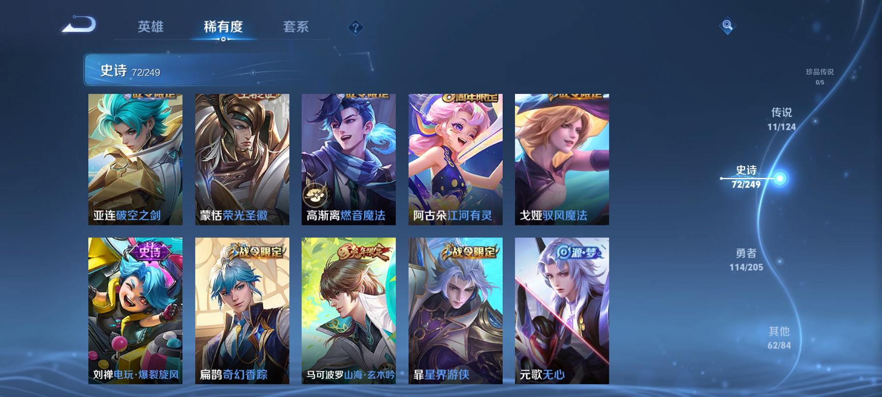 贵族等级:v8皮肤数:261情人节限定1 生肖限定6 传说品质11 荣耀典藏1 英雄数:123