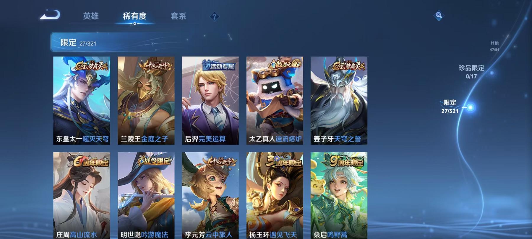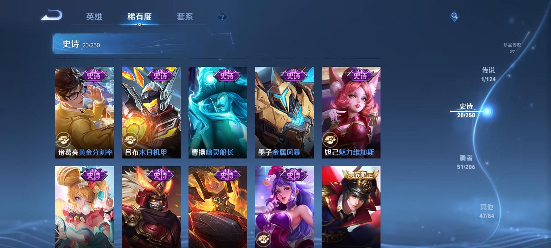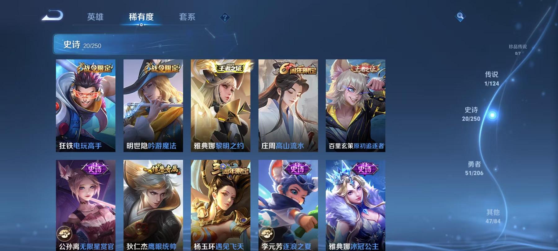 贵族等级:v5皮肤数:120荣耀典藏1 传说品质1 英雄数:122