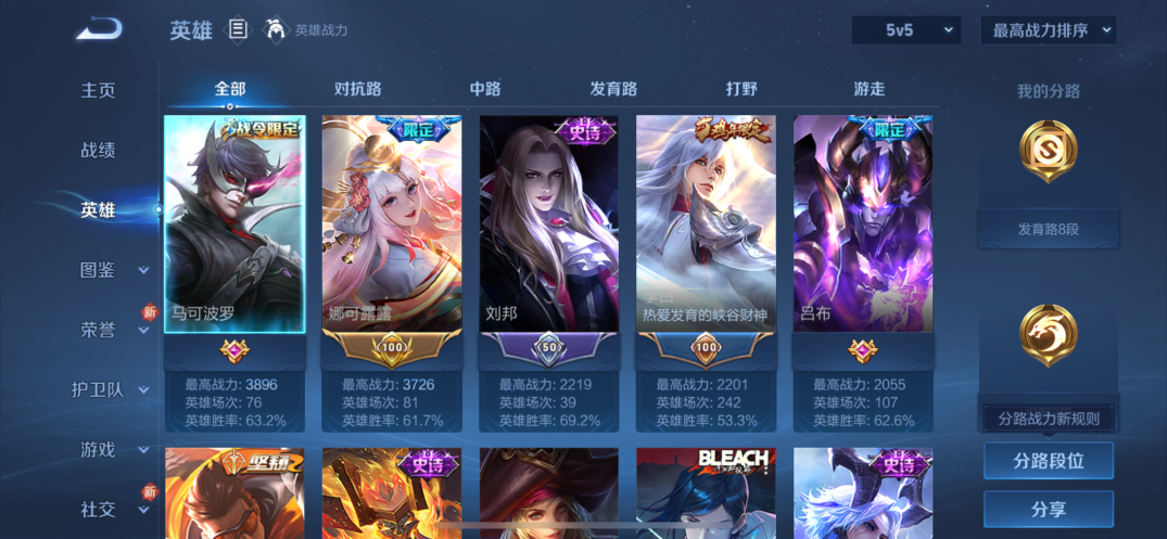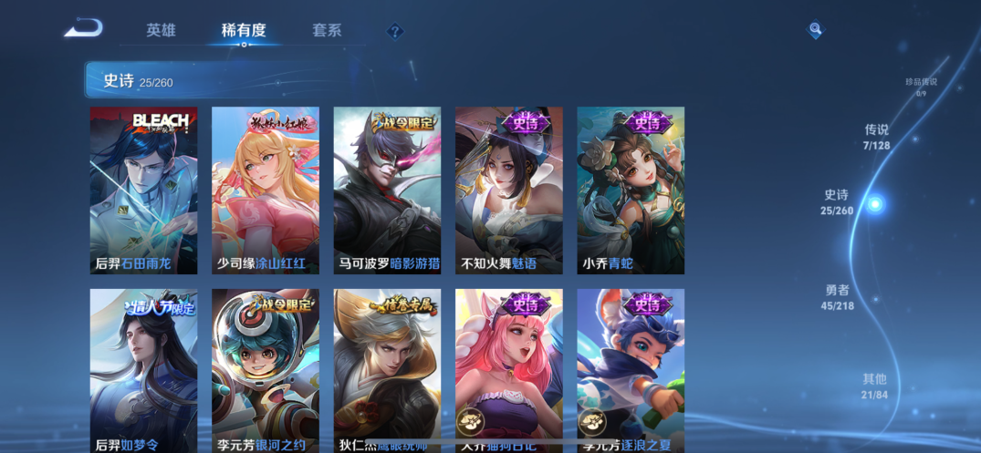 贵族等级:v7皮肤数:98情人节限定2 传说品质7 生肖限定1 英雄数:116