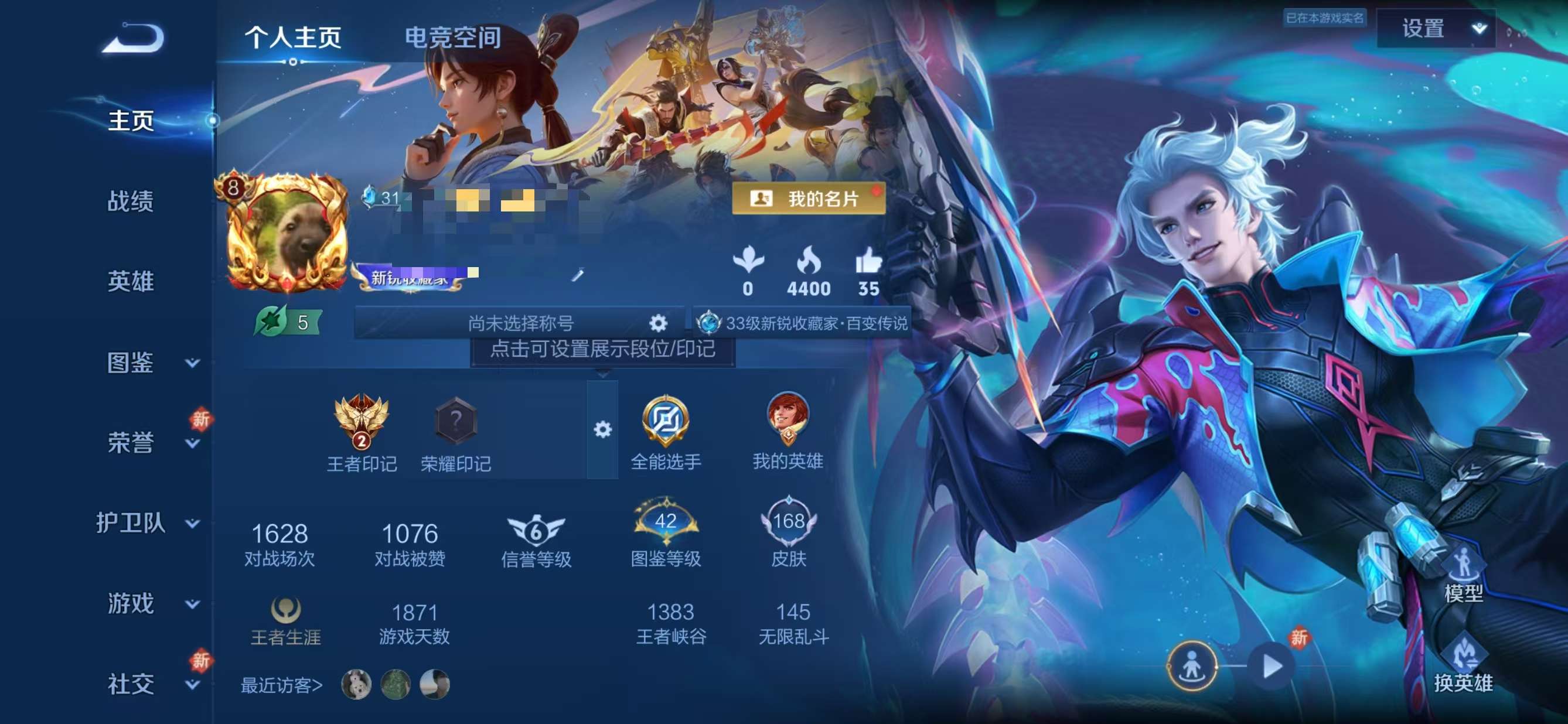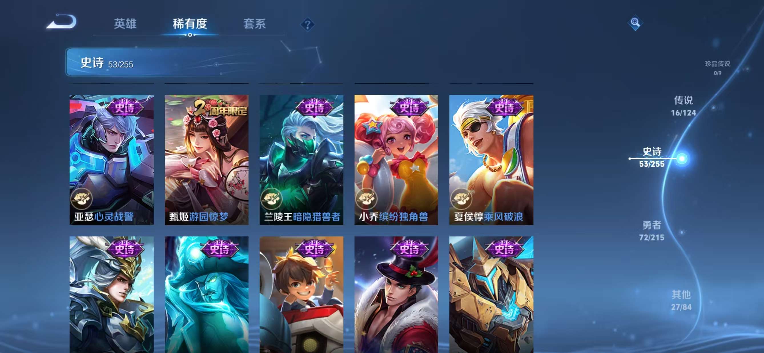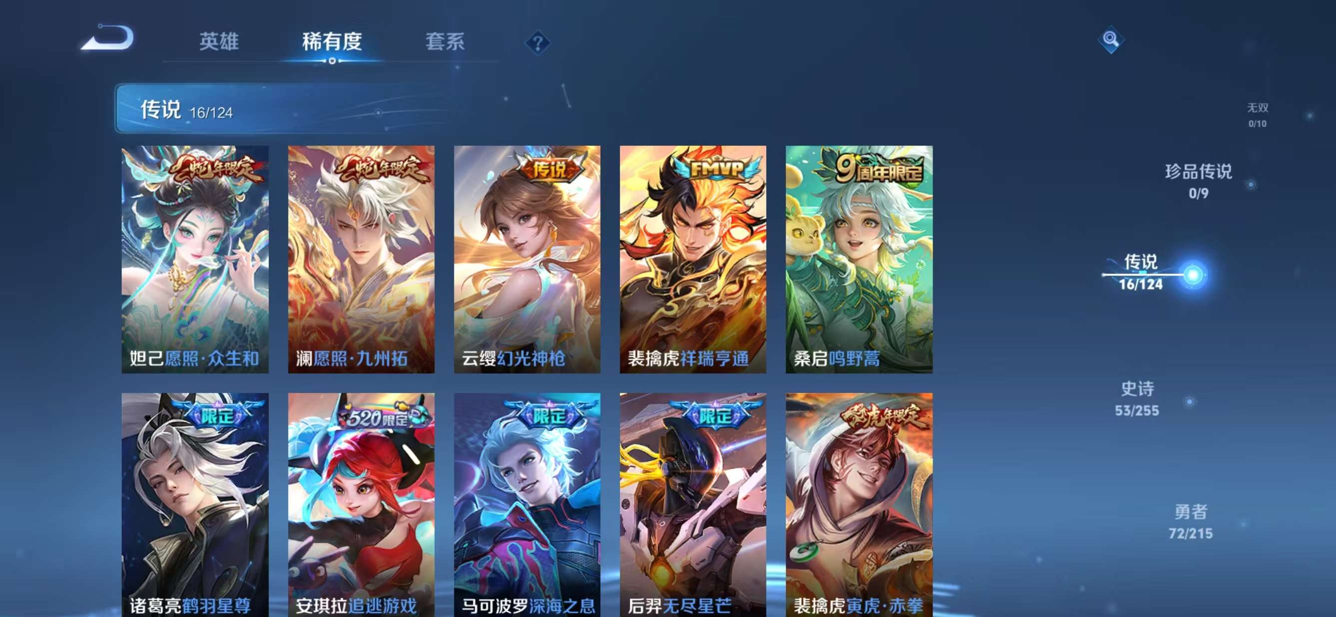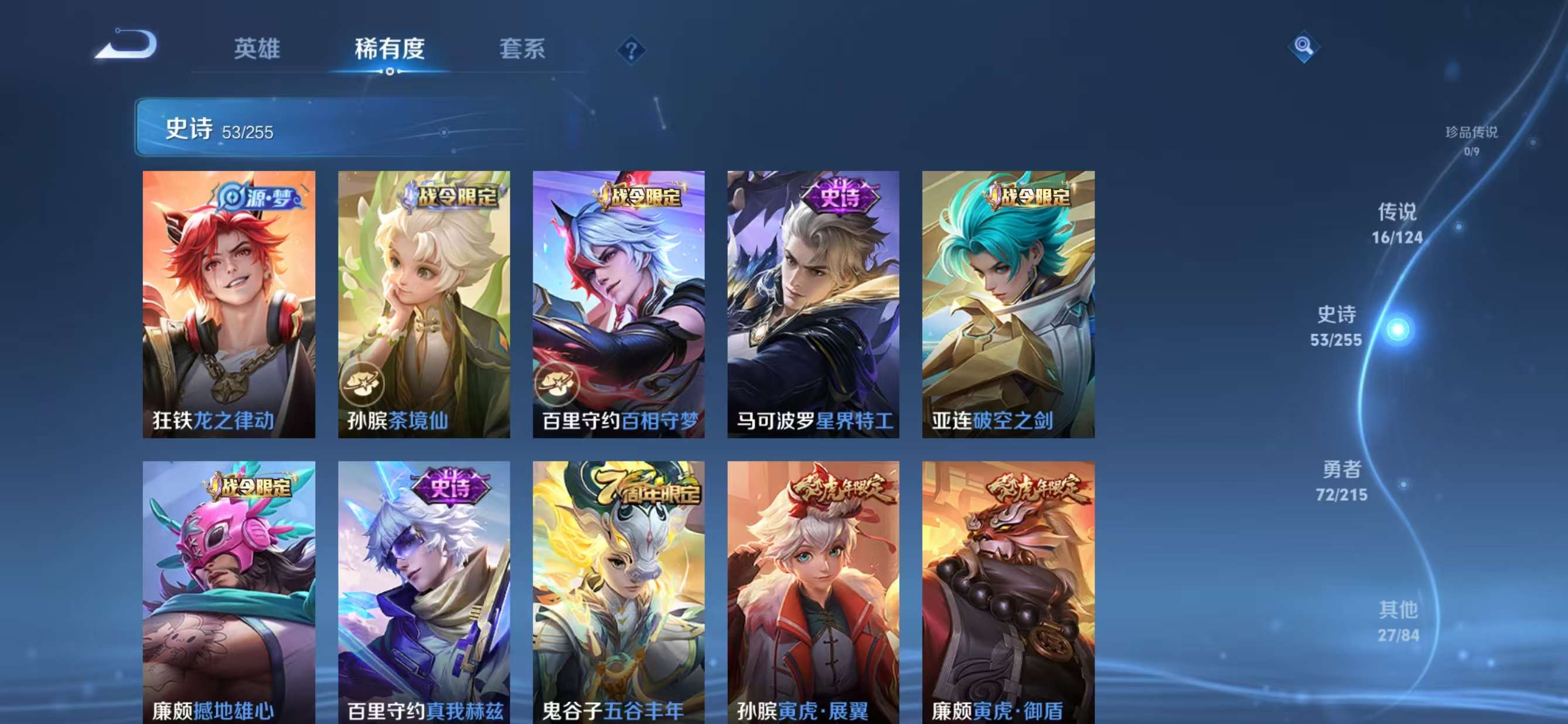 贵族等级:v8皮肤数:170传说品质16 生肖限定6 英雄数:124
