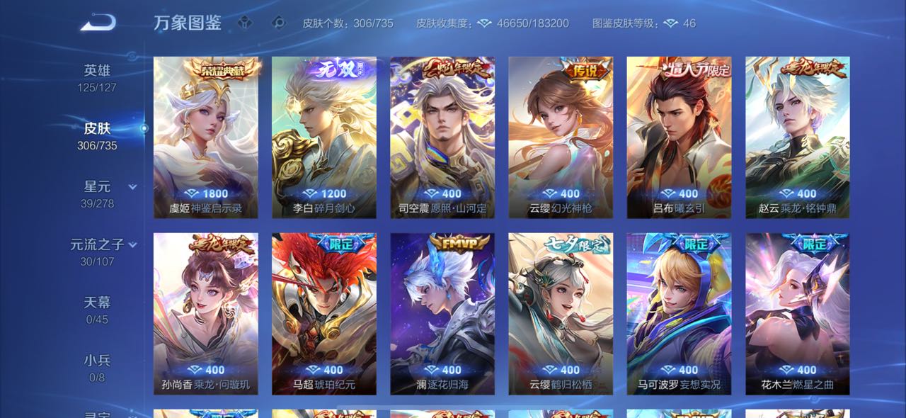 传说品质_后羿_黄金射手座传说品质_司空震_愿照·山河定传说品质_关羽_武圣传说品质_澜_逐花归海传说品质_诸葛亮_时雨天司传说品质_马可波罗_妄想实况传说品质_吕布_怒海麟威传说品质_吕布_曦玄引传说品质_孙悟空_地狱火传说品质_孙悟空_零号·赤焰传说品质_云缨_鹤归松栖传说品质_云缨_幻光神枪传说品质_李白_诗剑行传说品质_马超_无双飞将传说品质_马超_琥珀纪元传说品质_花木兰_燃星之曲传说品质_镜_炽阳神光传说品质_貂蝉_仲夏夜之梦传说品质_伽罗_炽翼辉光传说品质_百里守约_碎云传说品质_李信_山海·炽霜斩传说品质_李信_一念神魔传说品质_孙尚香_末日机甲传说品质_孙尚香_乘龙·问璇玑传说品质_小乔_山海·琳琅生传说品质_曜_云鹰飞将传说品质_曜_山海·苍雷引传说品质_孙策_挚爱之约传说品质_狄仁杰_超时空战士传说品质_狄仁杰_神器·狴犴令传说品质_虞姬_启明星使传说品质_刘备_时之恋人传说品质_李元芳_飞鸢探春传说品质_赵云_乘龙·铭钟鼎