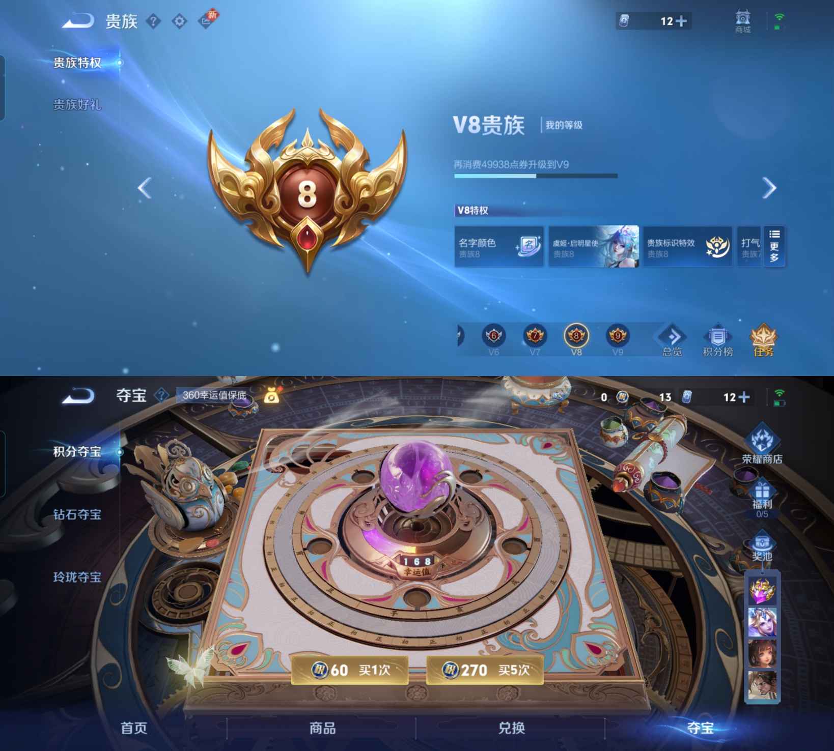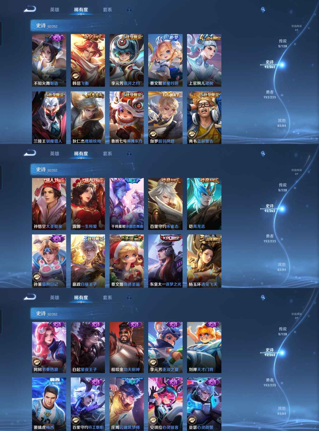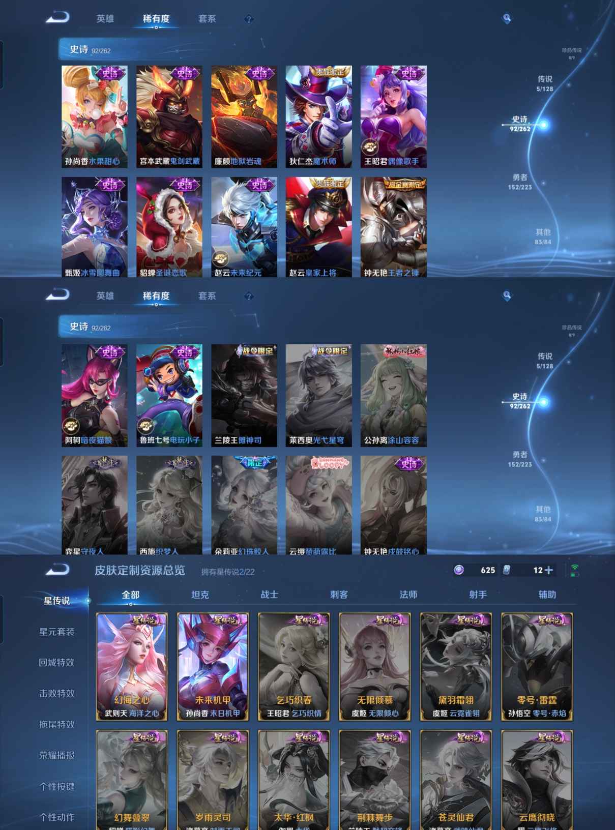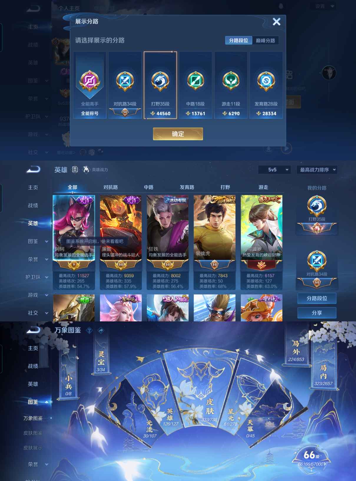 贵族等级:v8皮肤数:333传说品质5 生肖限定6 情人节限定3 英雄数:126