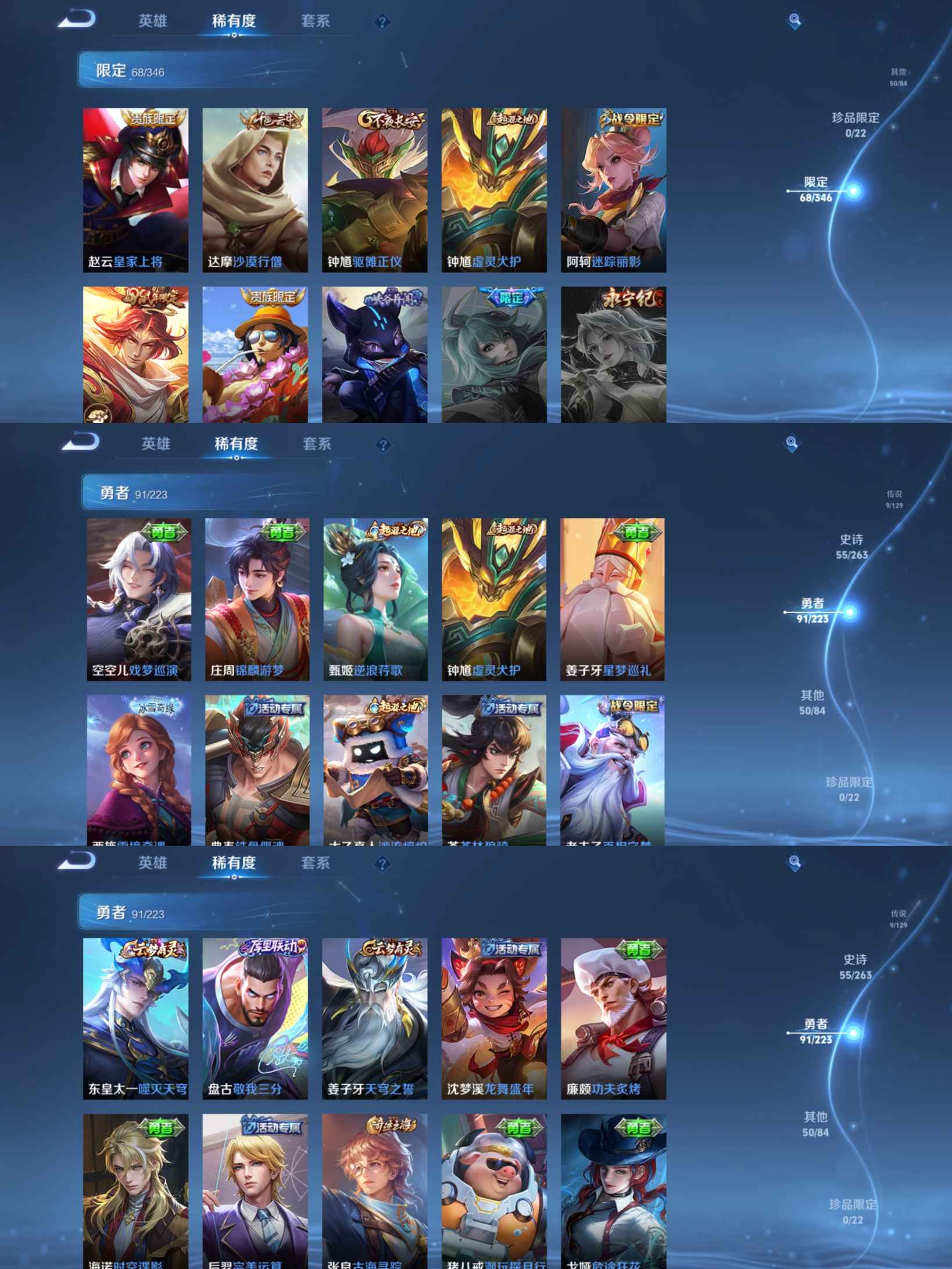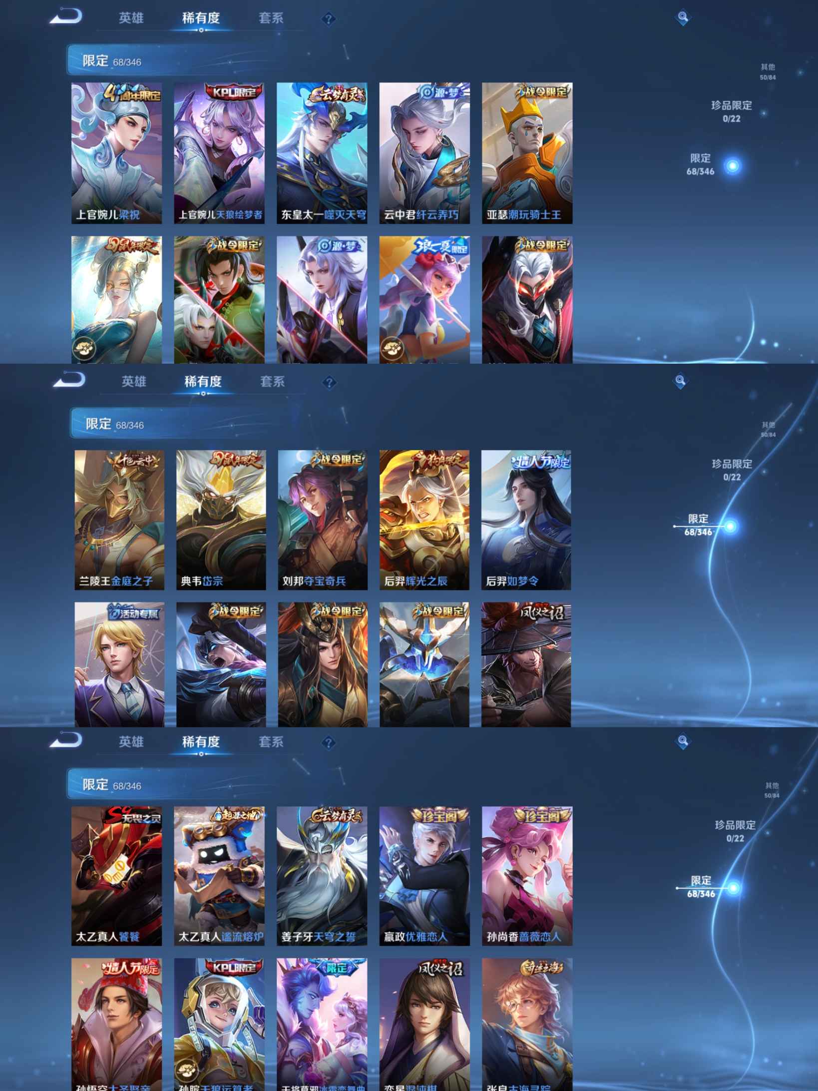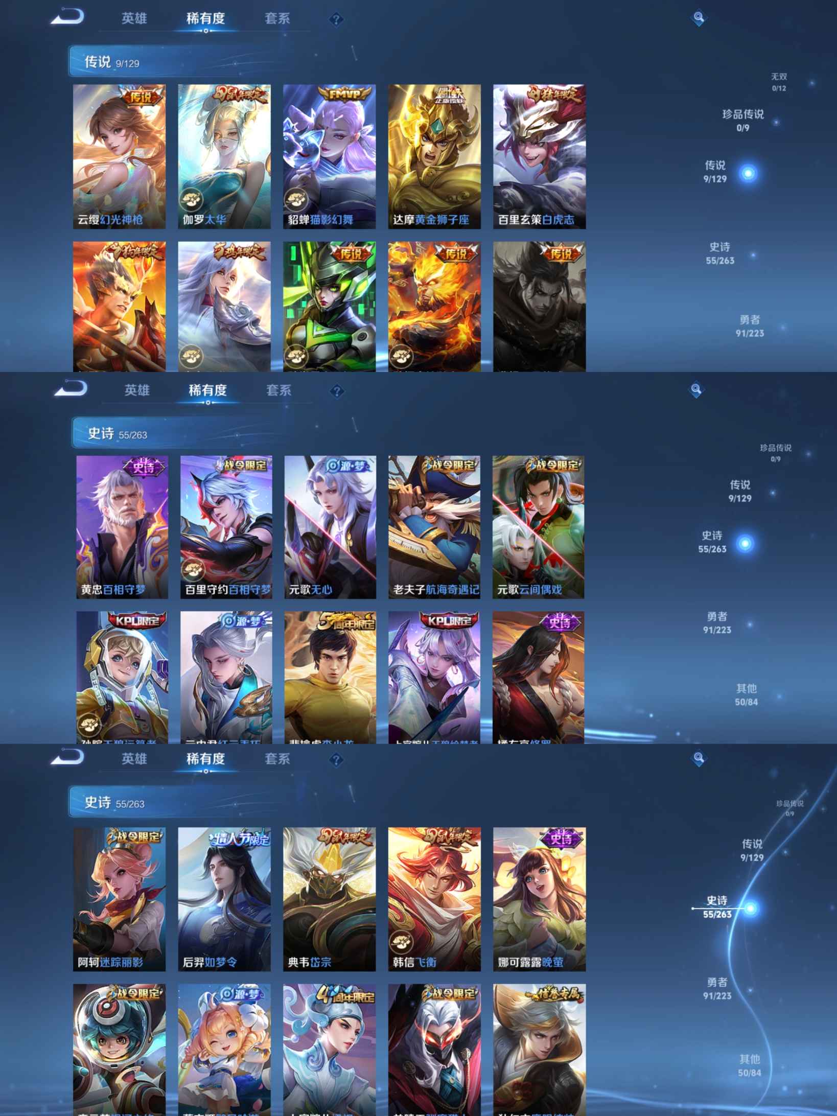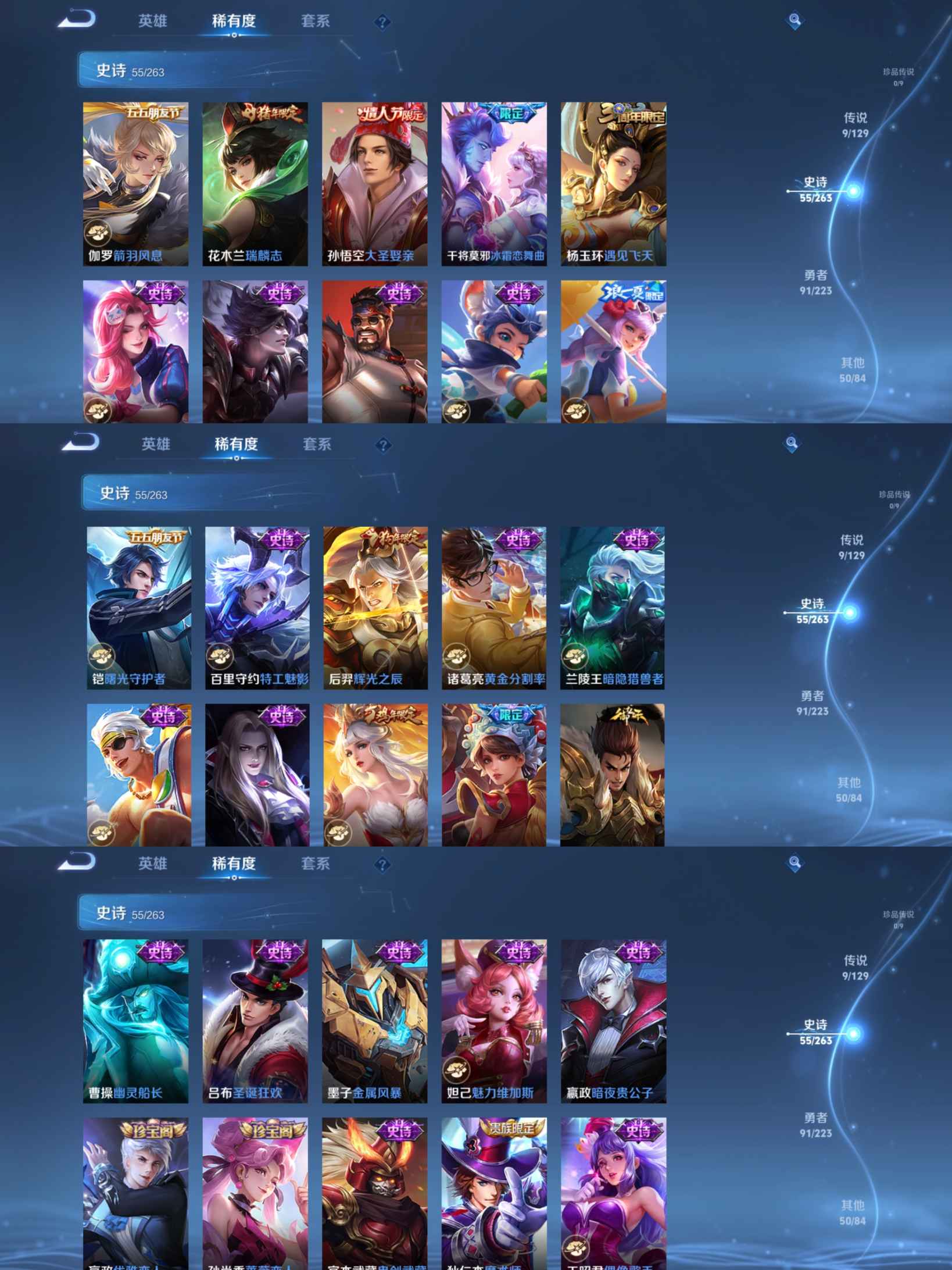 贵族等级:v7皮肤数:210生肖限定9 情人节限定2 传说品质9 英雄数:124