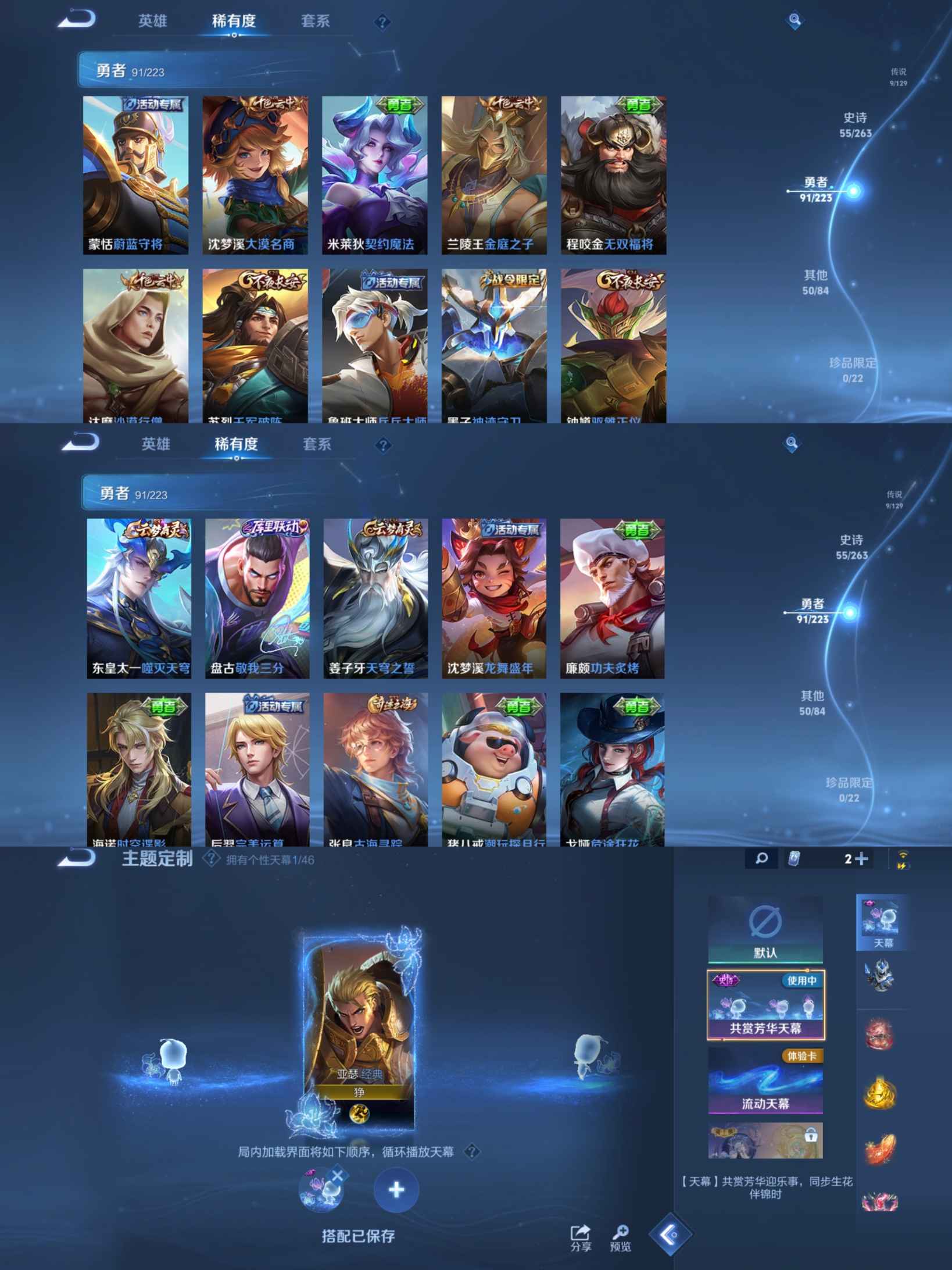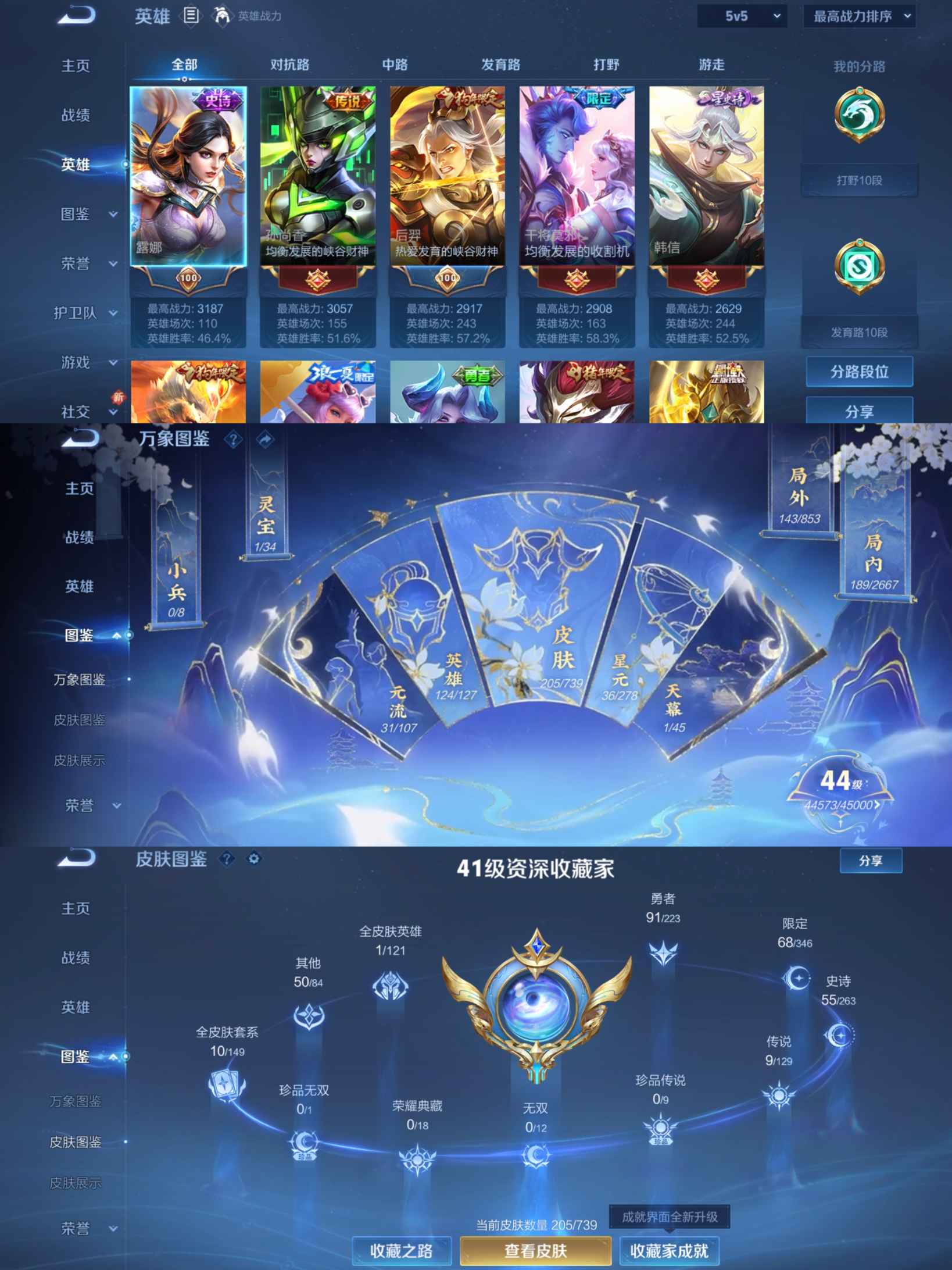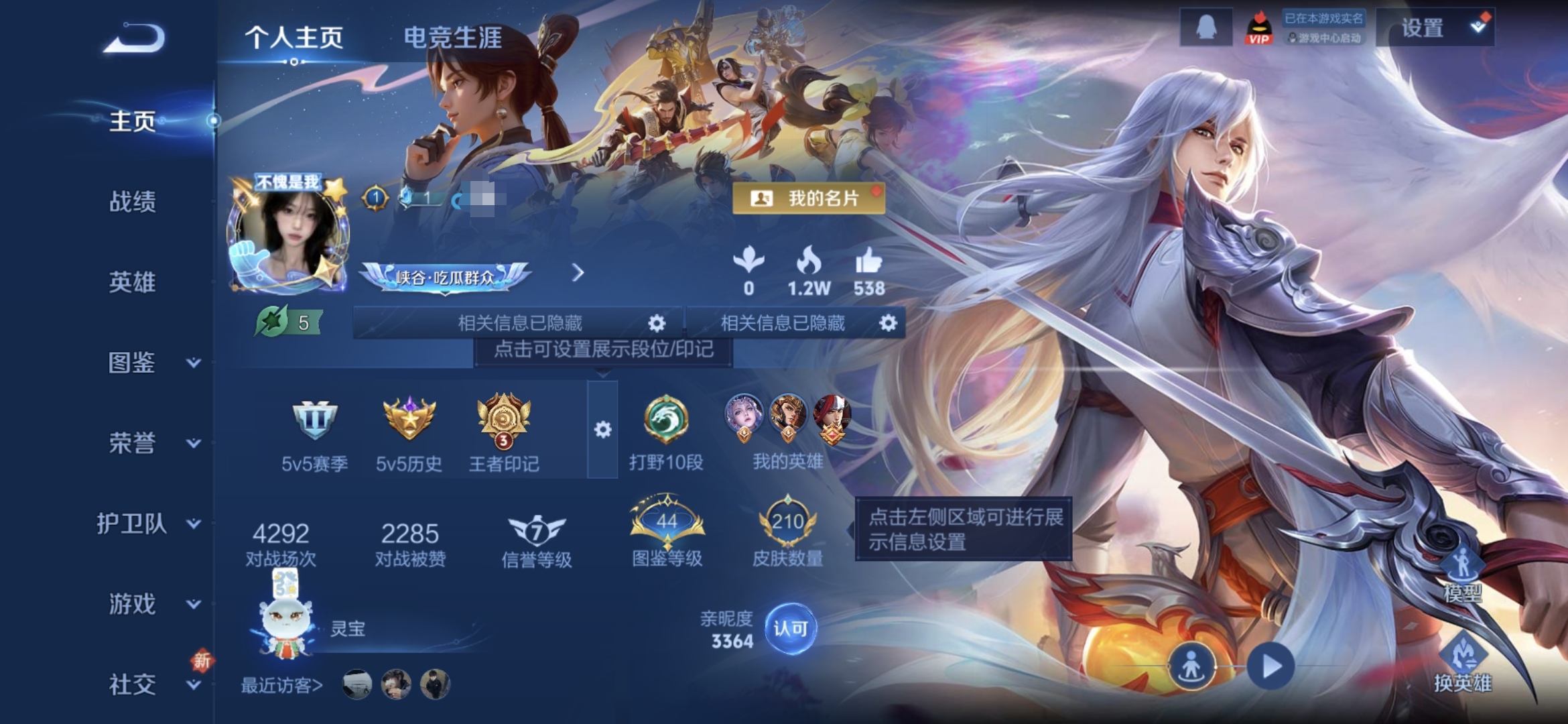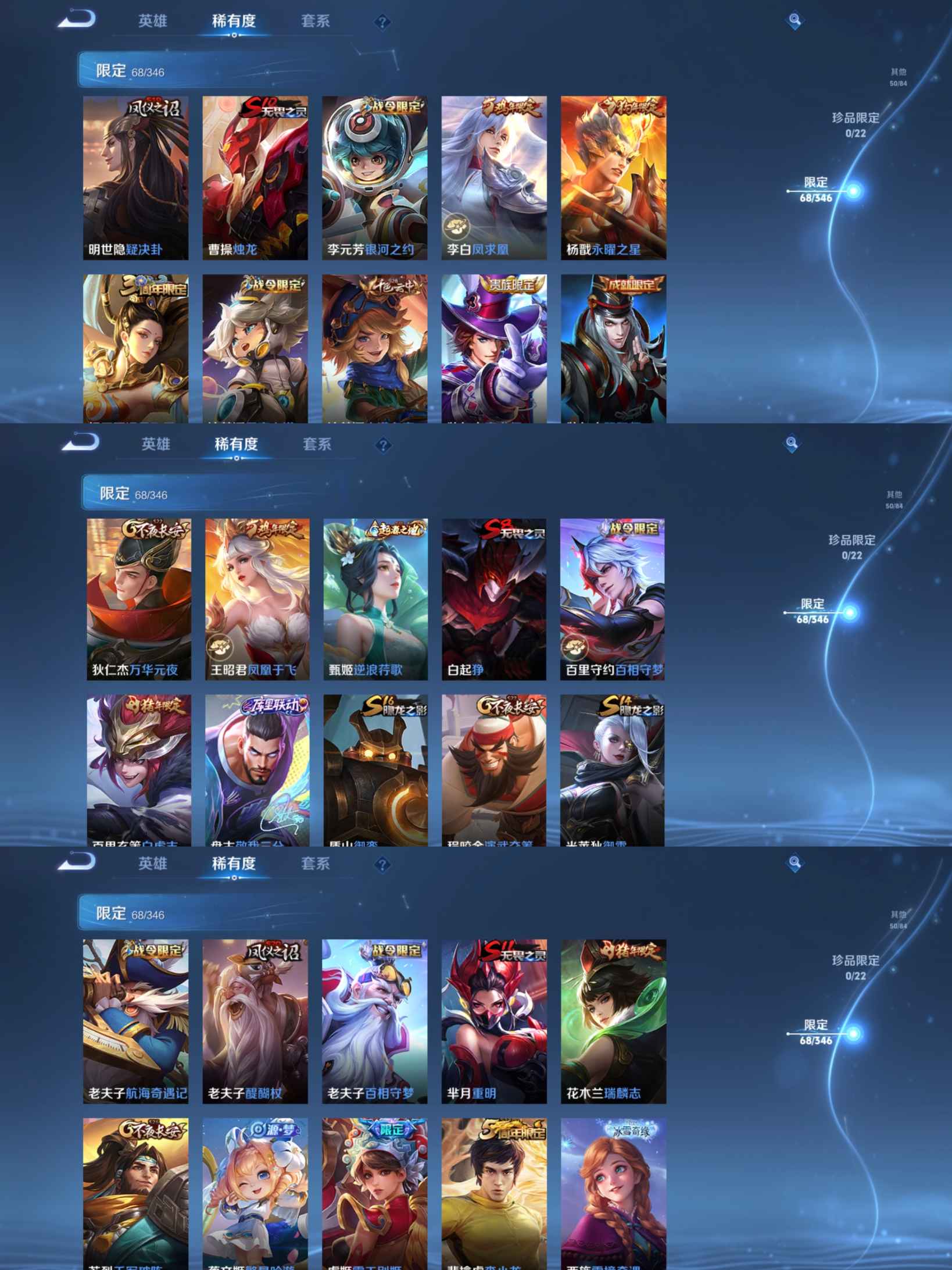 贵族等级:v7皮肤数:210生肖限定9 情人节限定2 传说品质9 英雄数:124