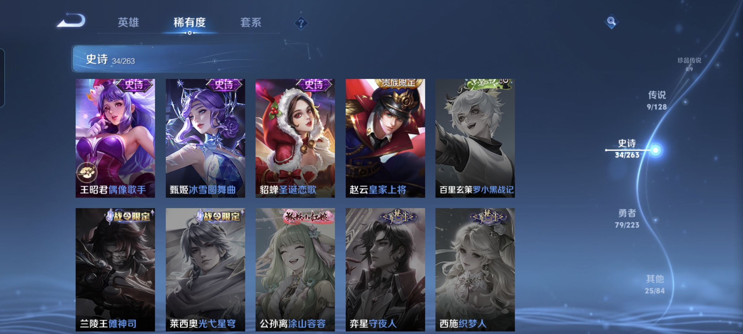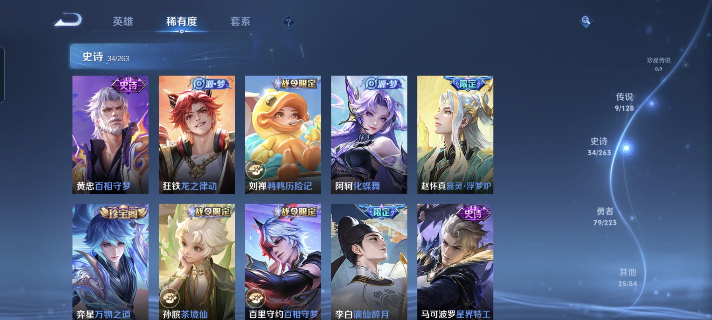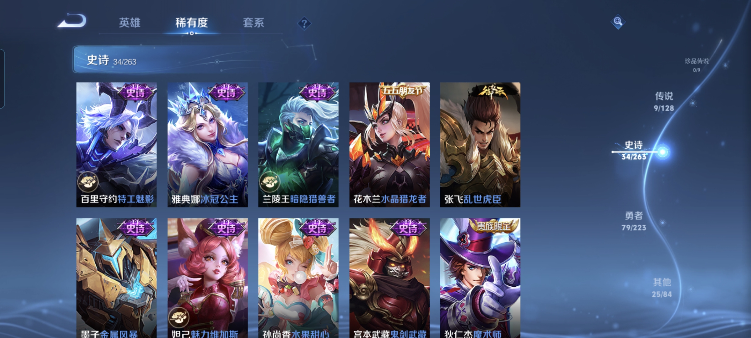 贵族等级:v7皮肤数:147传说品质9 生肖限定4 英雄数:116