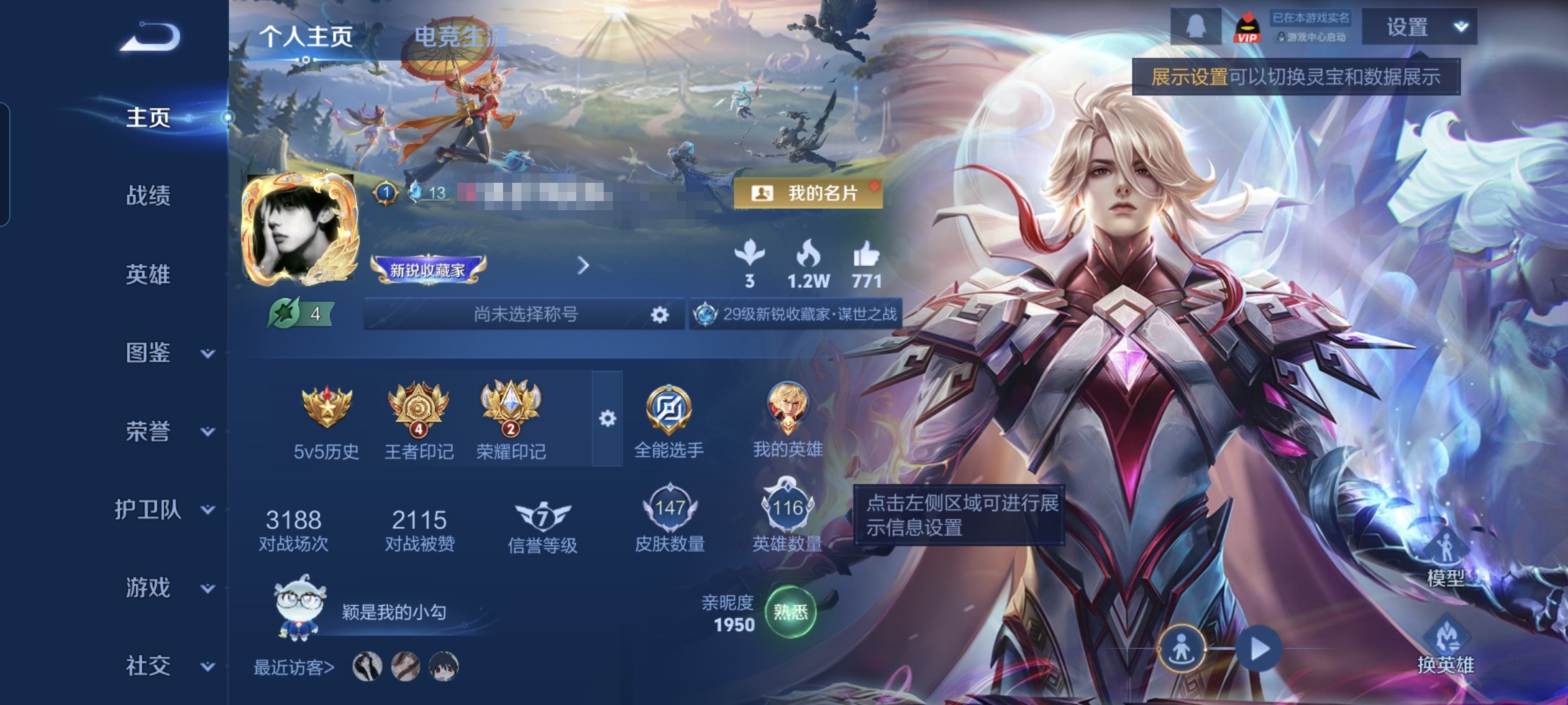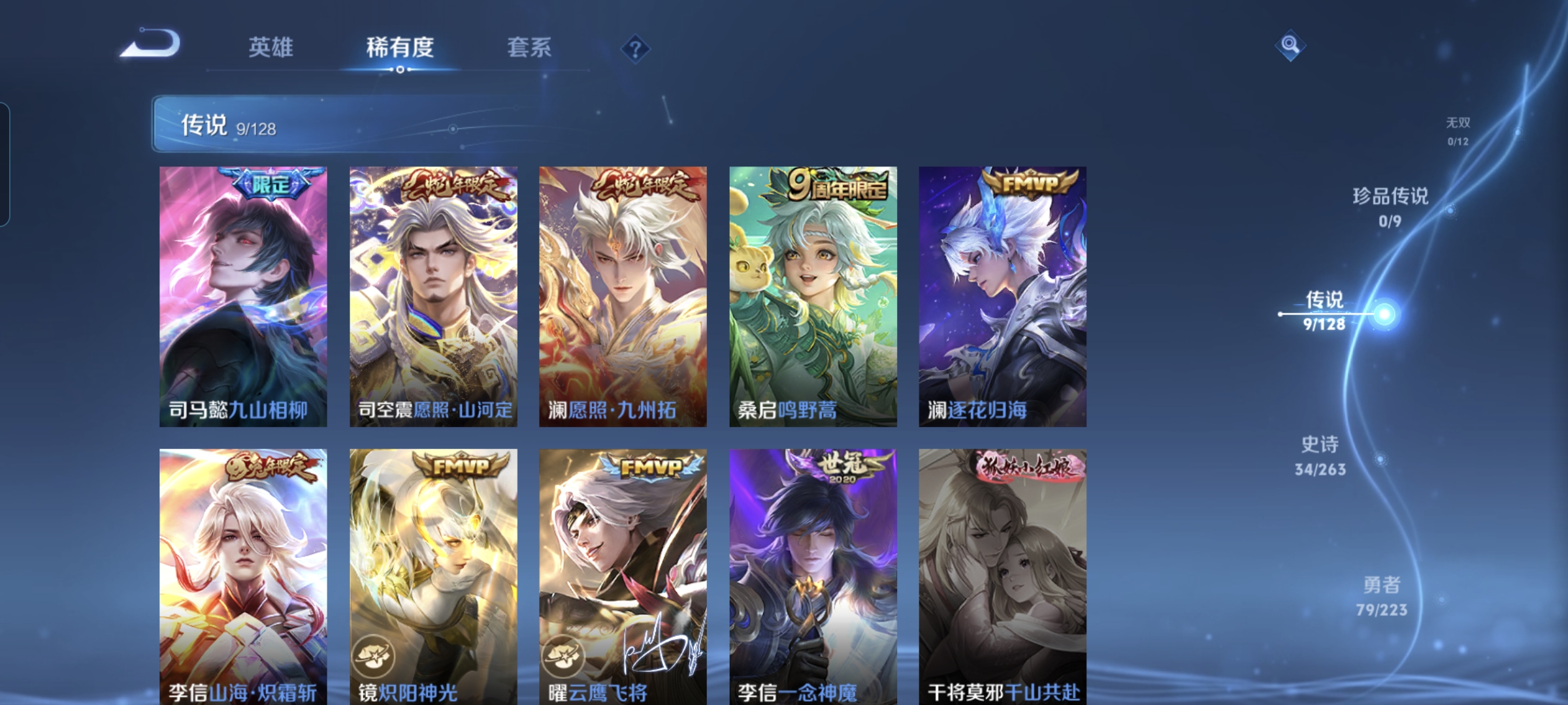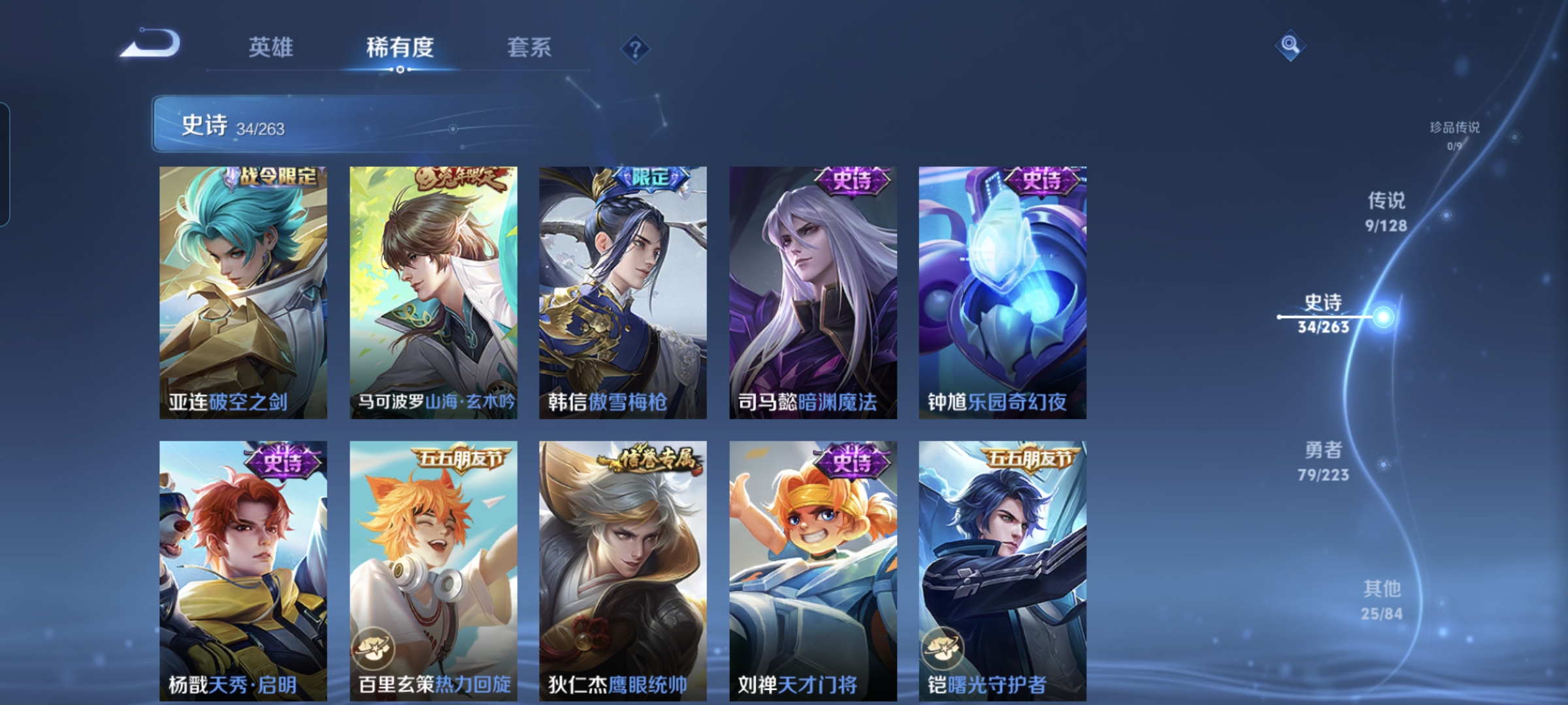 贵族等级:v7皮肤数:147传说品质9 生肖限定4 英雄数:116