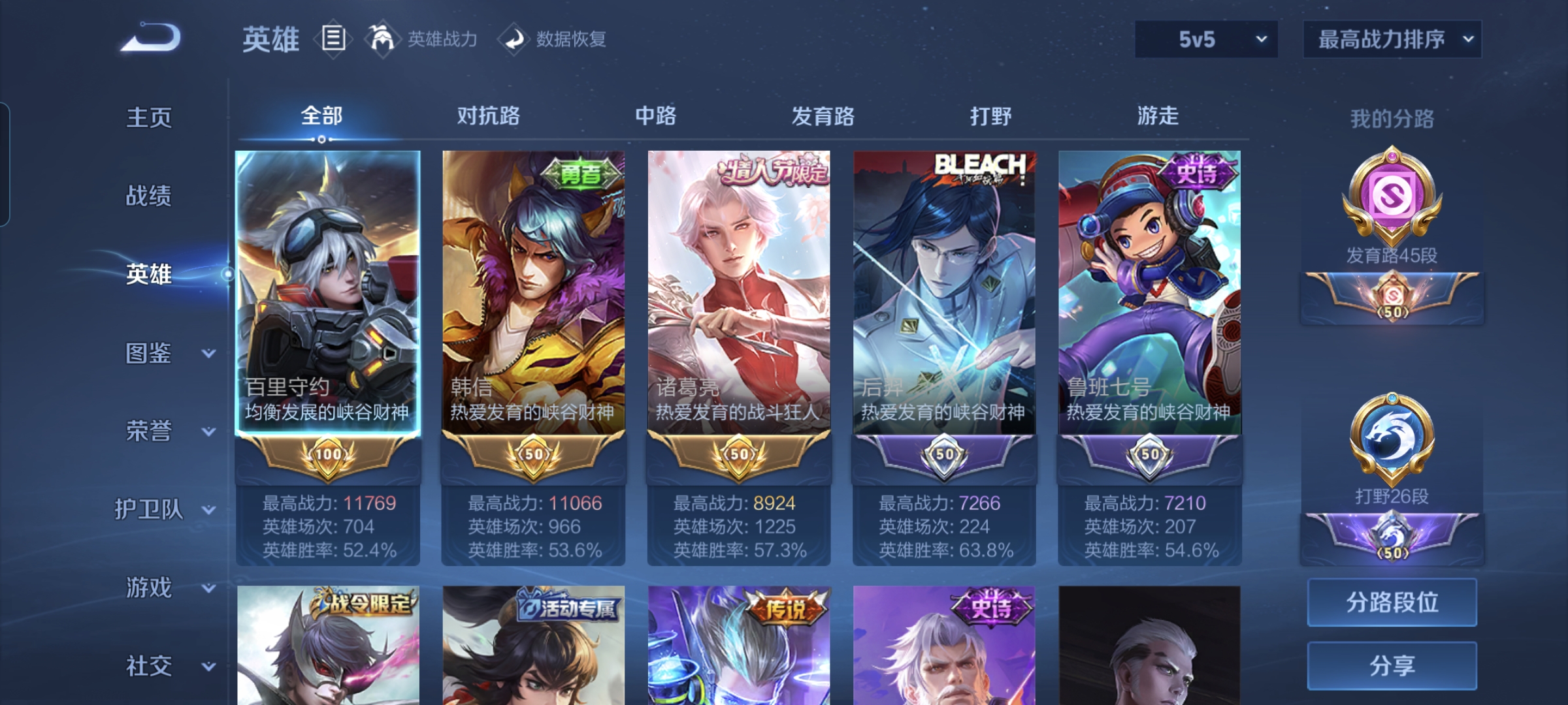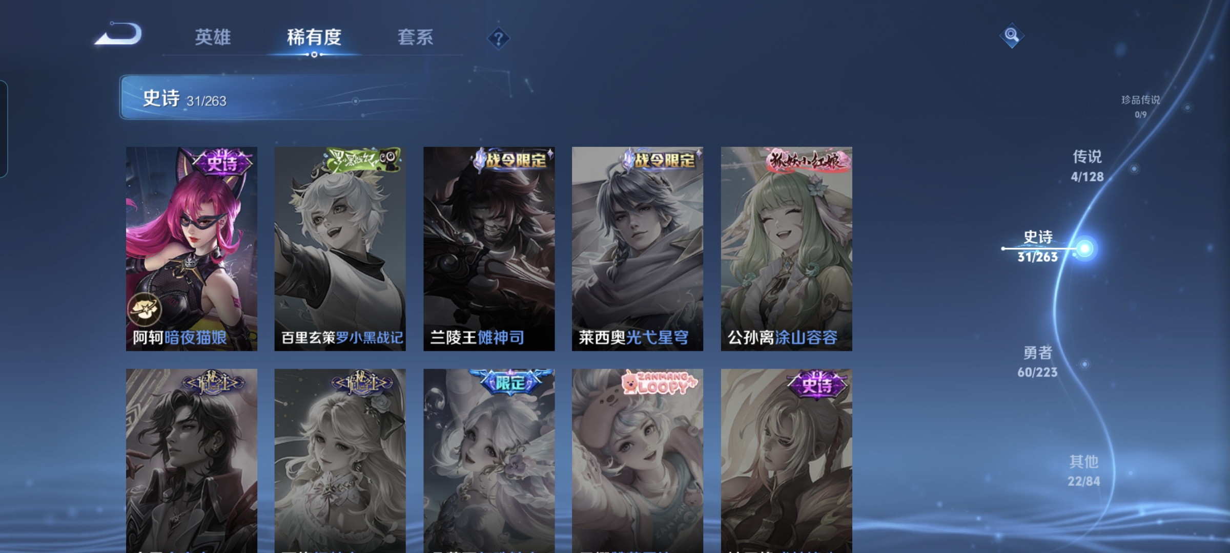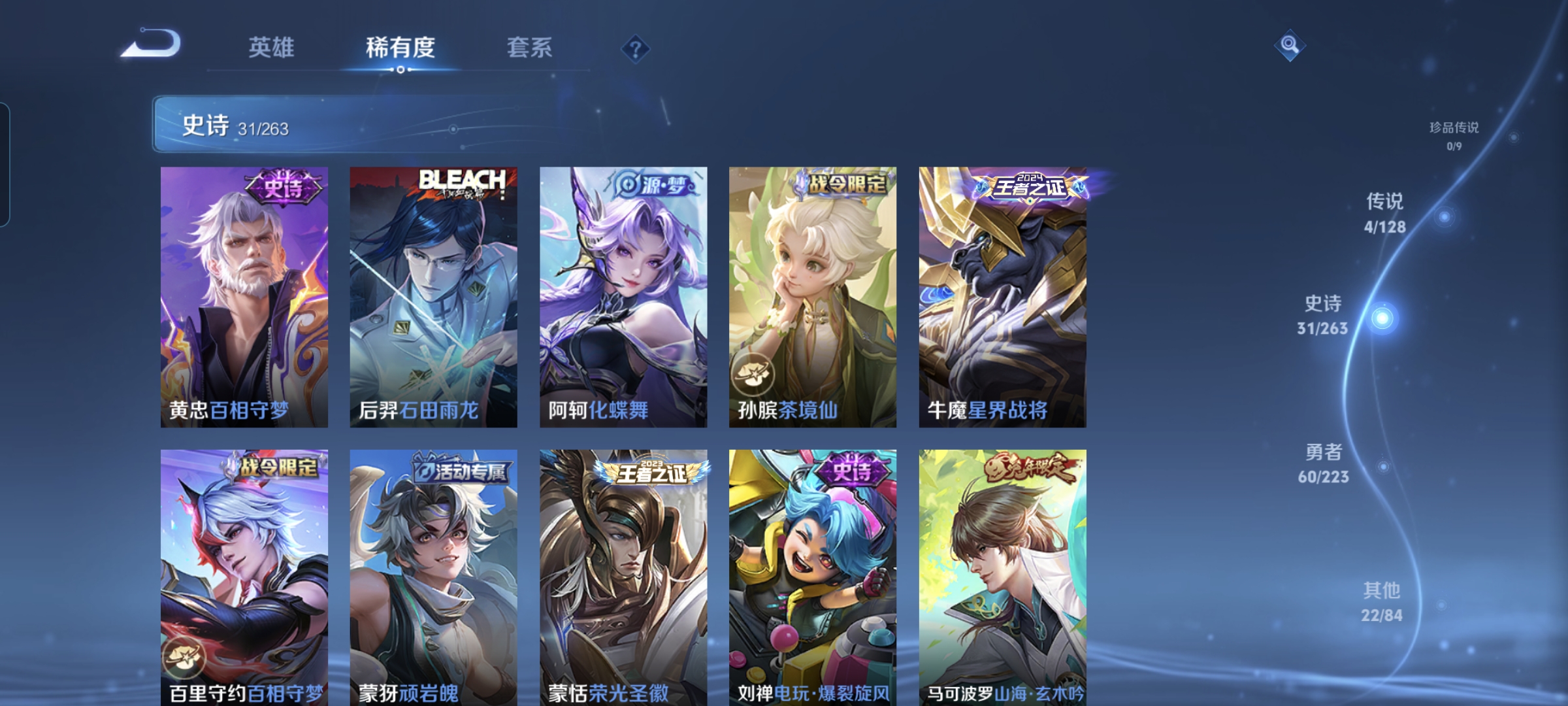 贵族等级:v2皮肤数:117传说品质4 情人节限定1 生肖限定1 英雄数:121