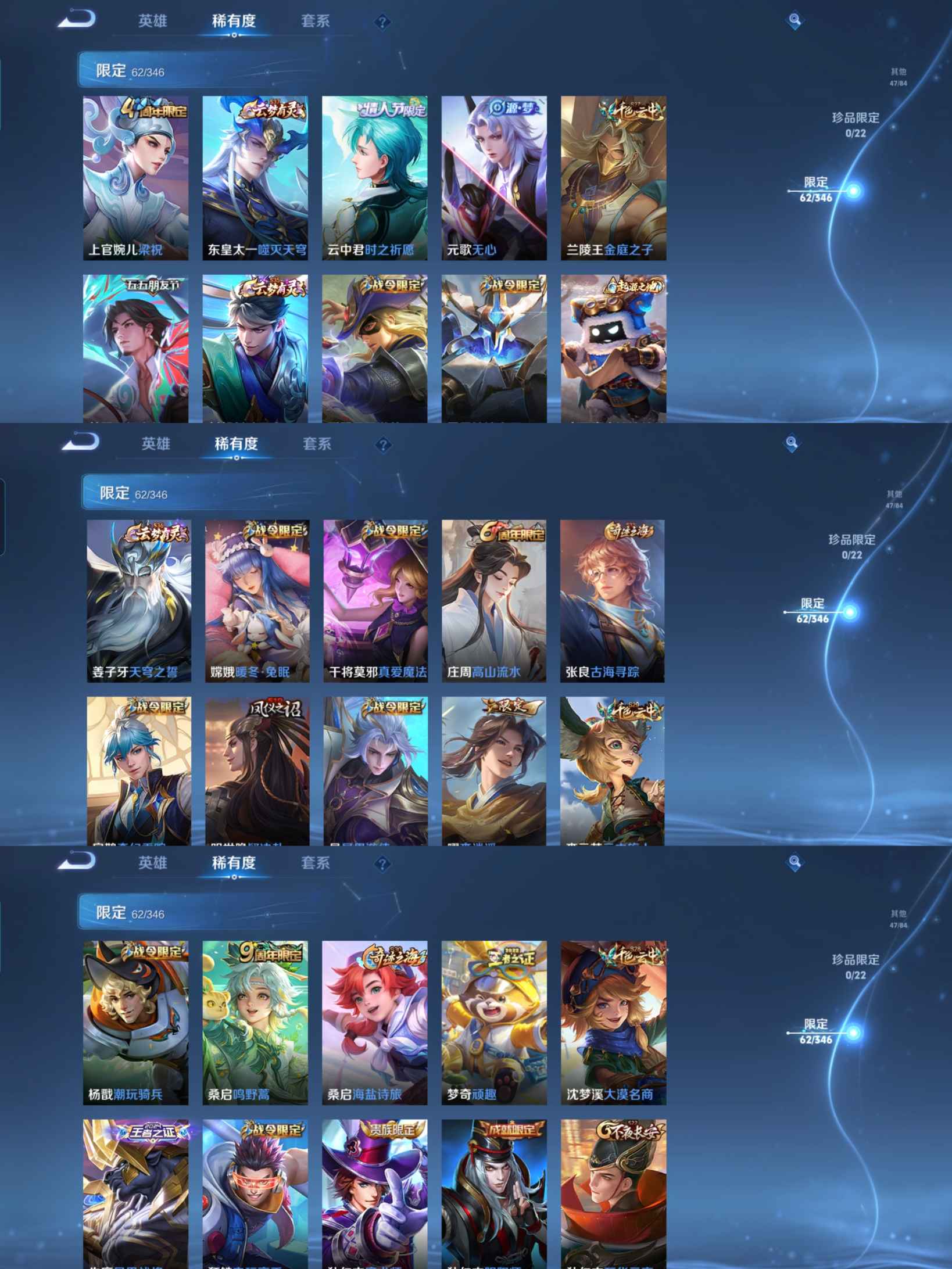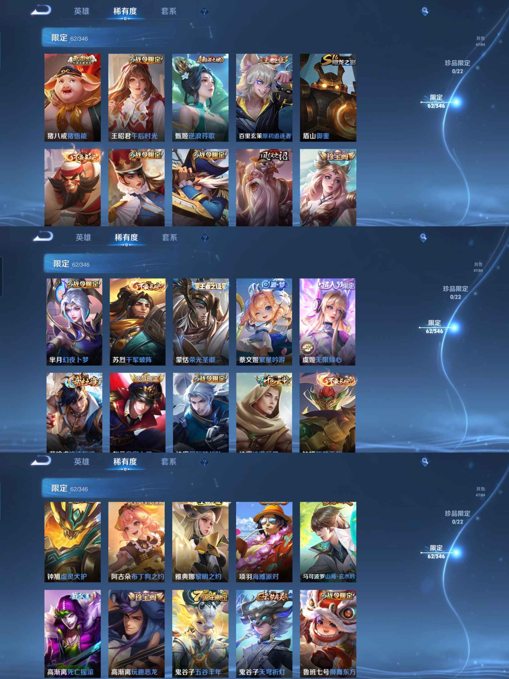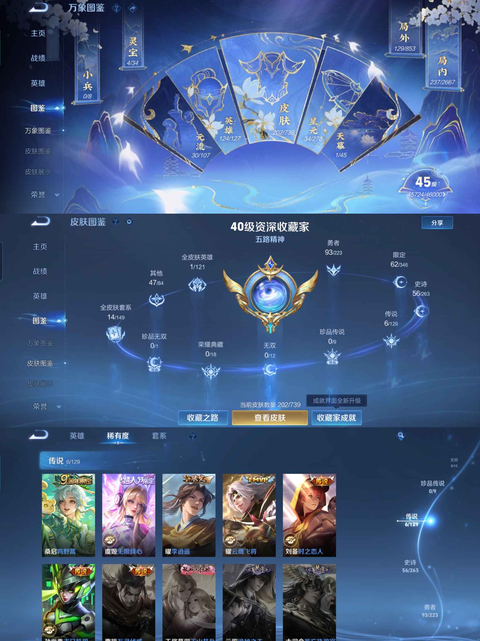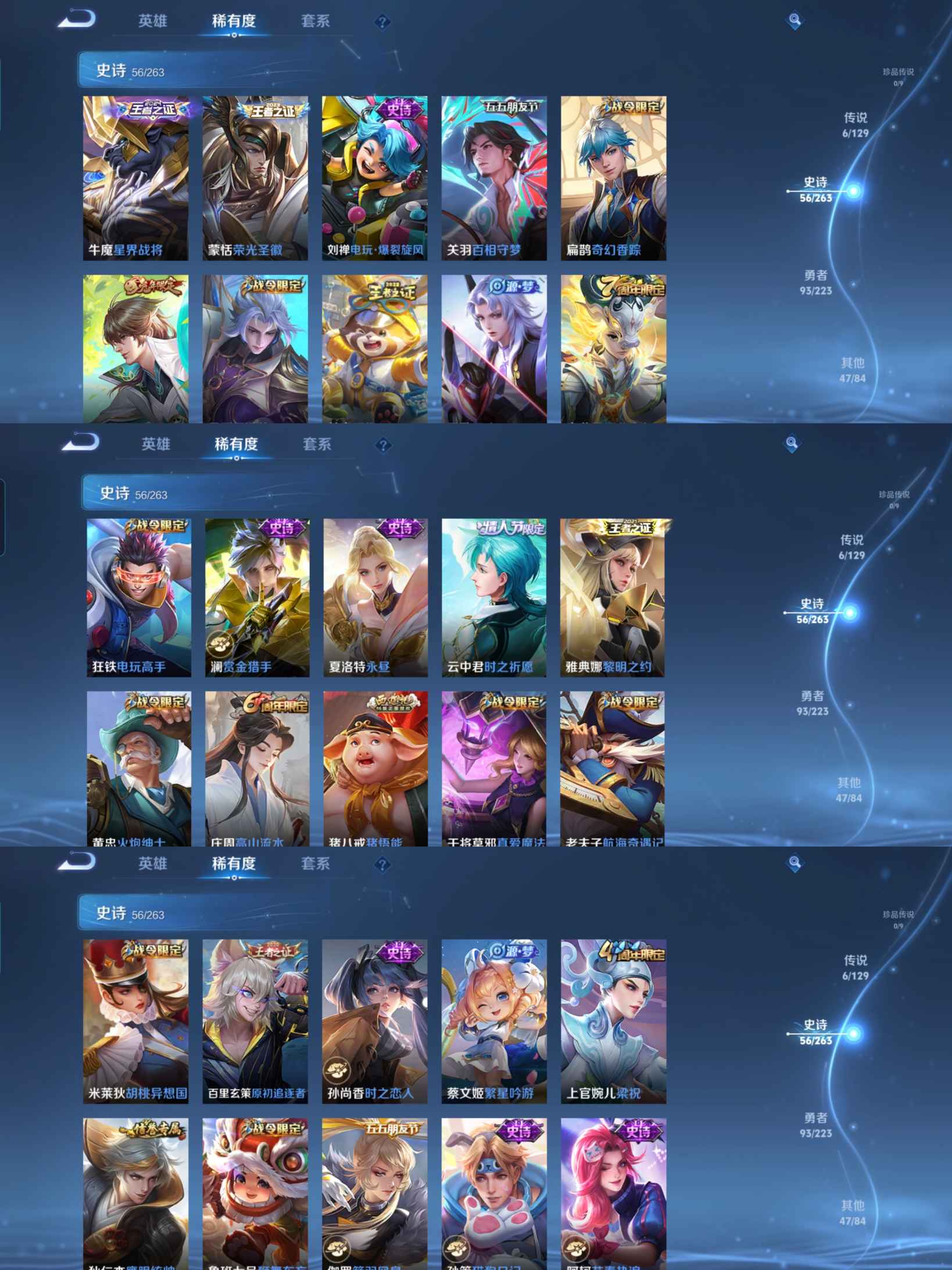 贵族等级:v6皮肤数:203情人节限定2 生肖限定1 传说品质6 英雄数:124