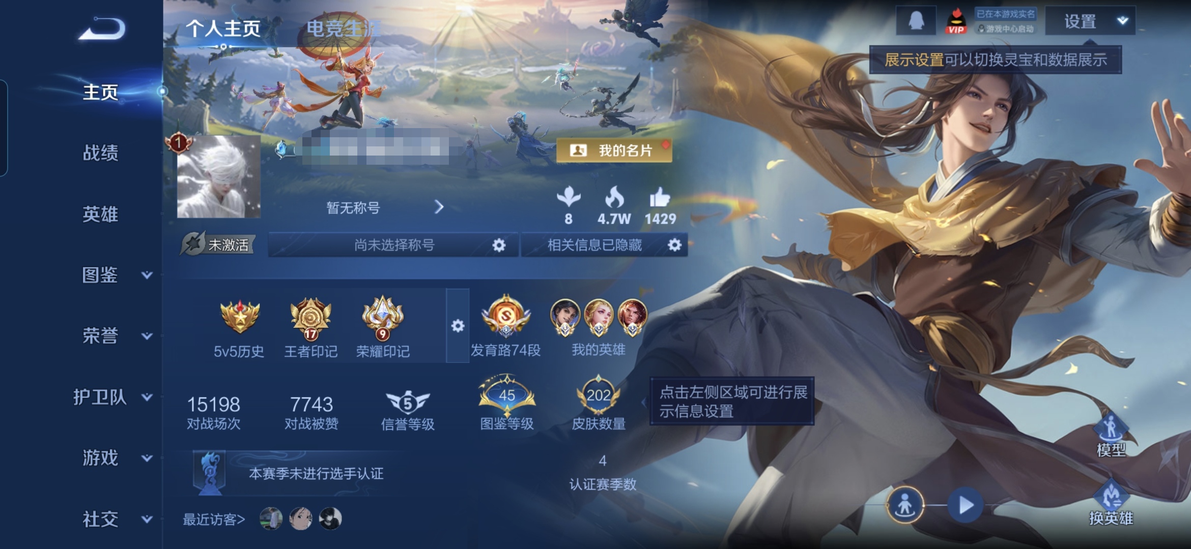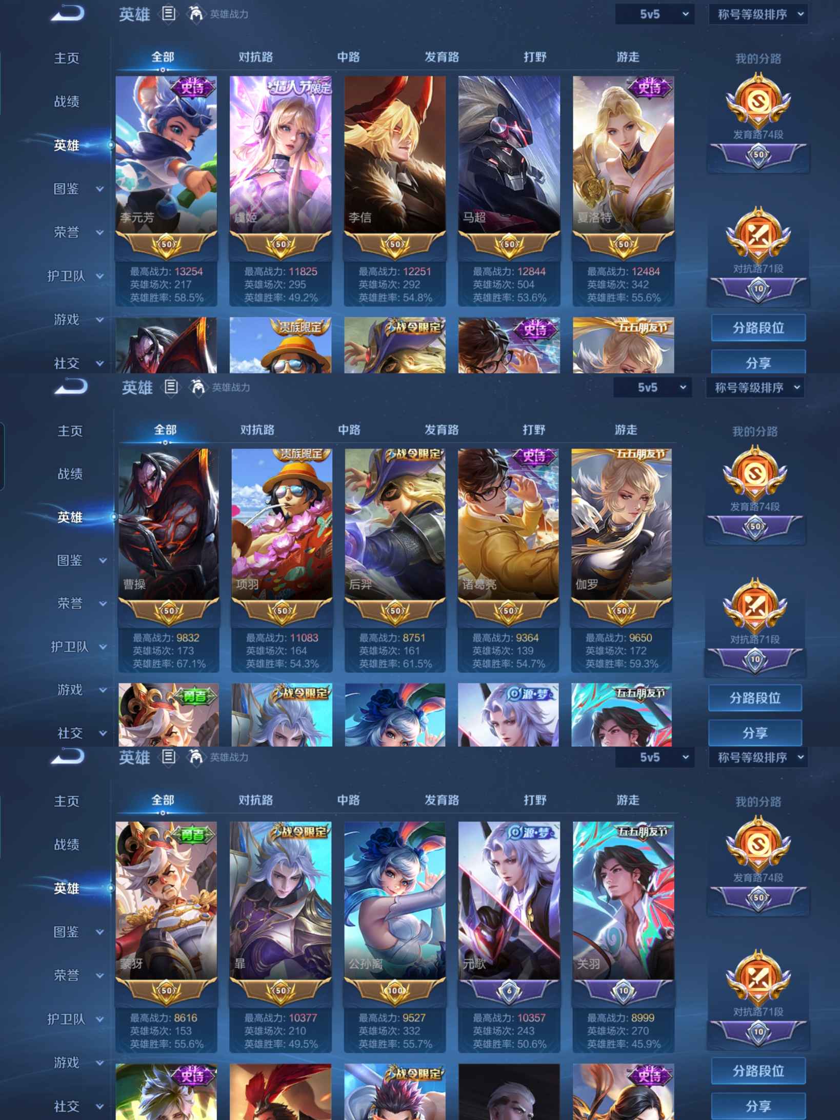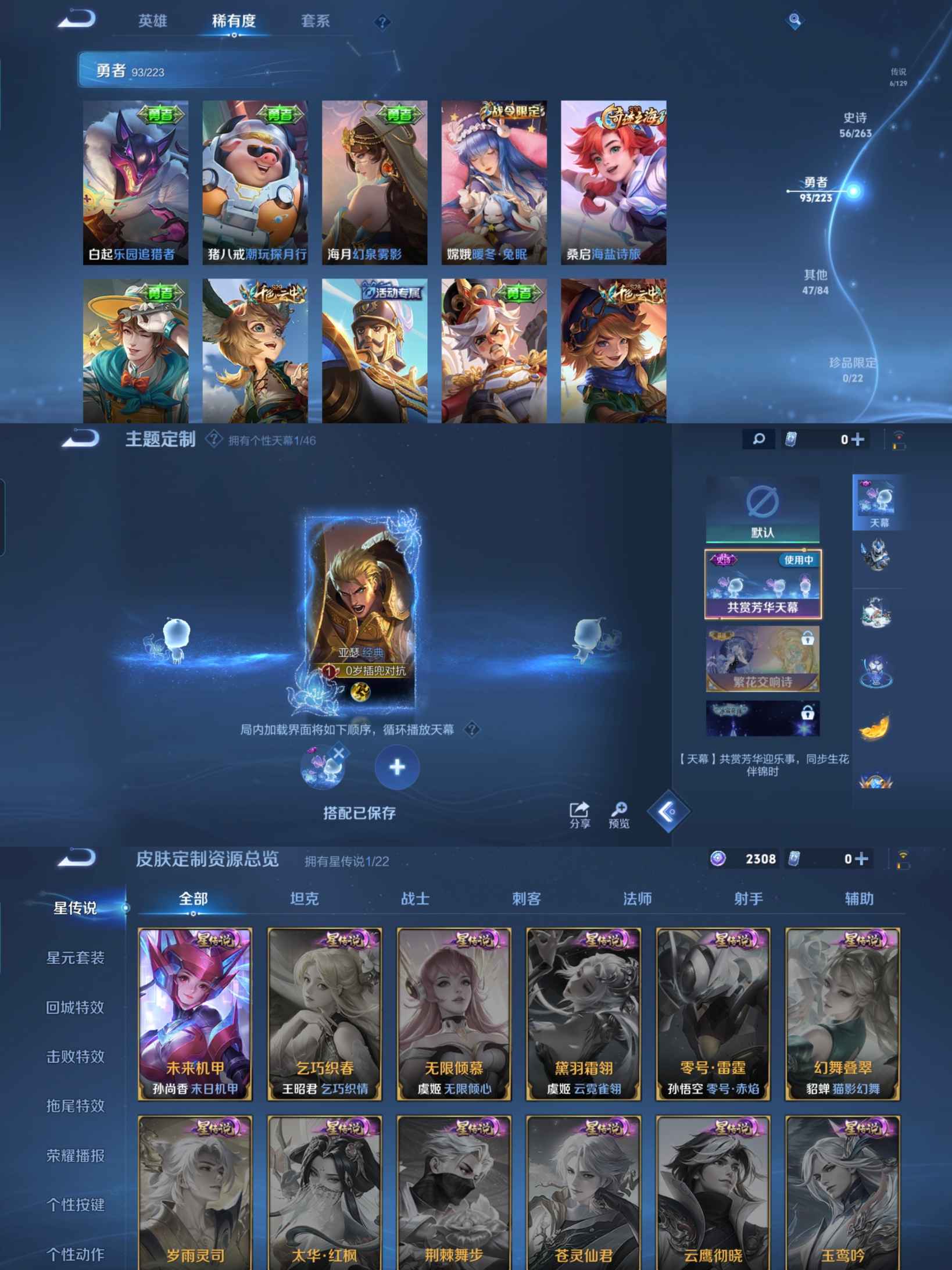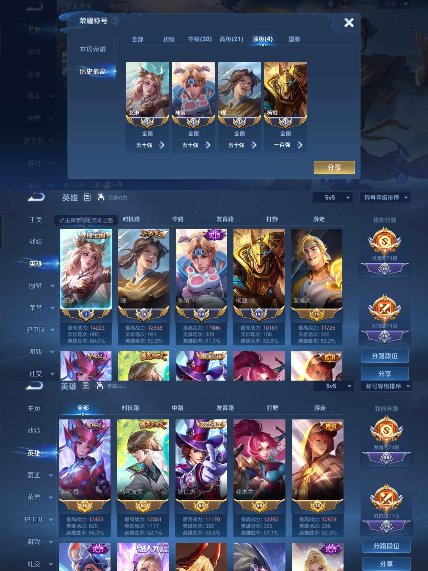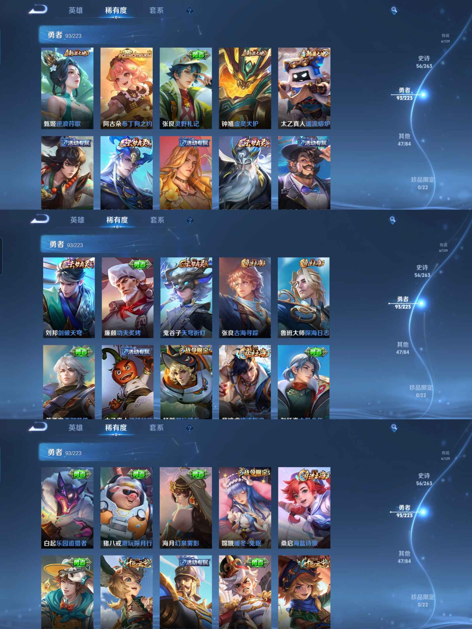 贵族等级:v6皮肤数:203情人节限定2 生肖限定1 传说品质6 英雄数:124