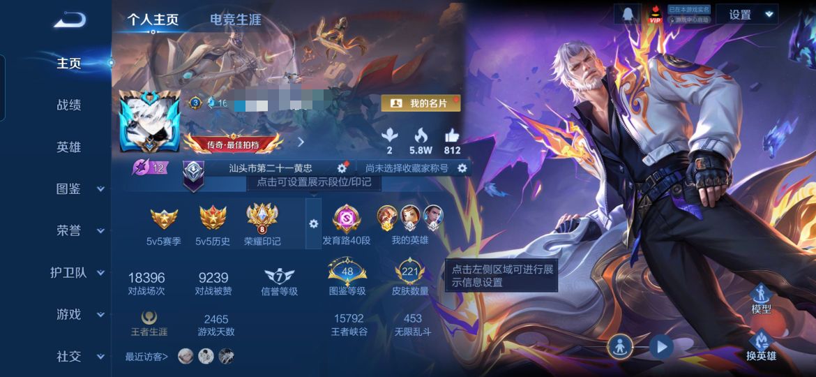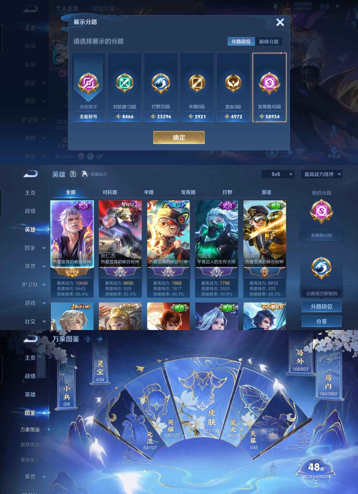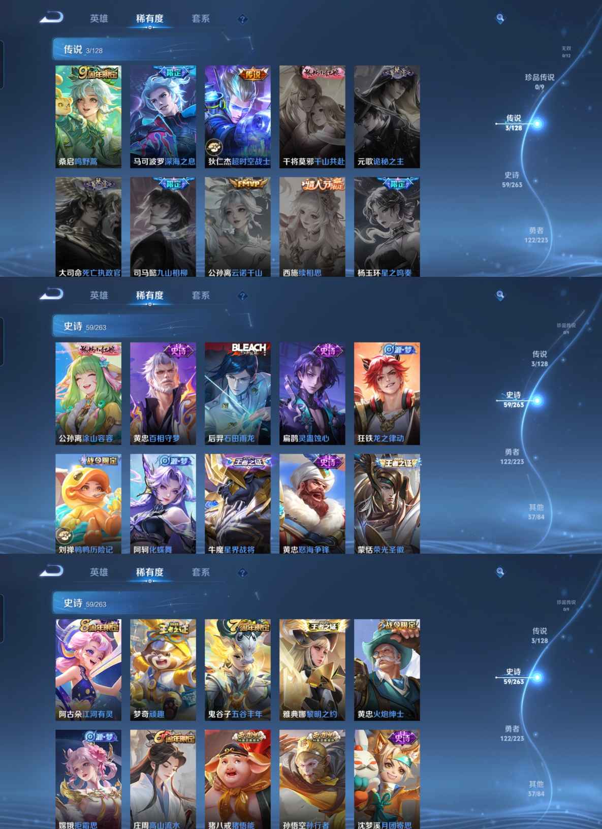 贵族等级:v4皮肤数:221传说品质3 英雄数:126